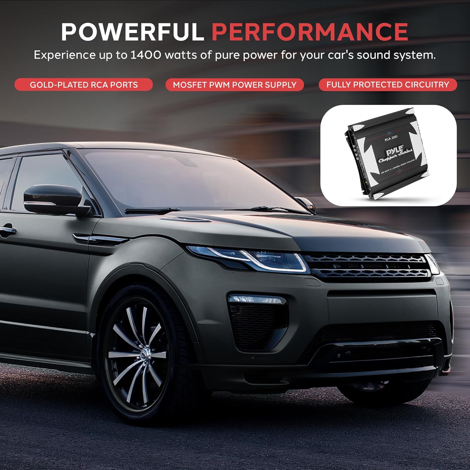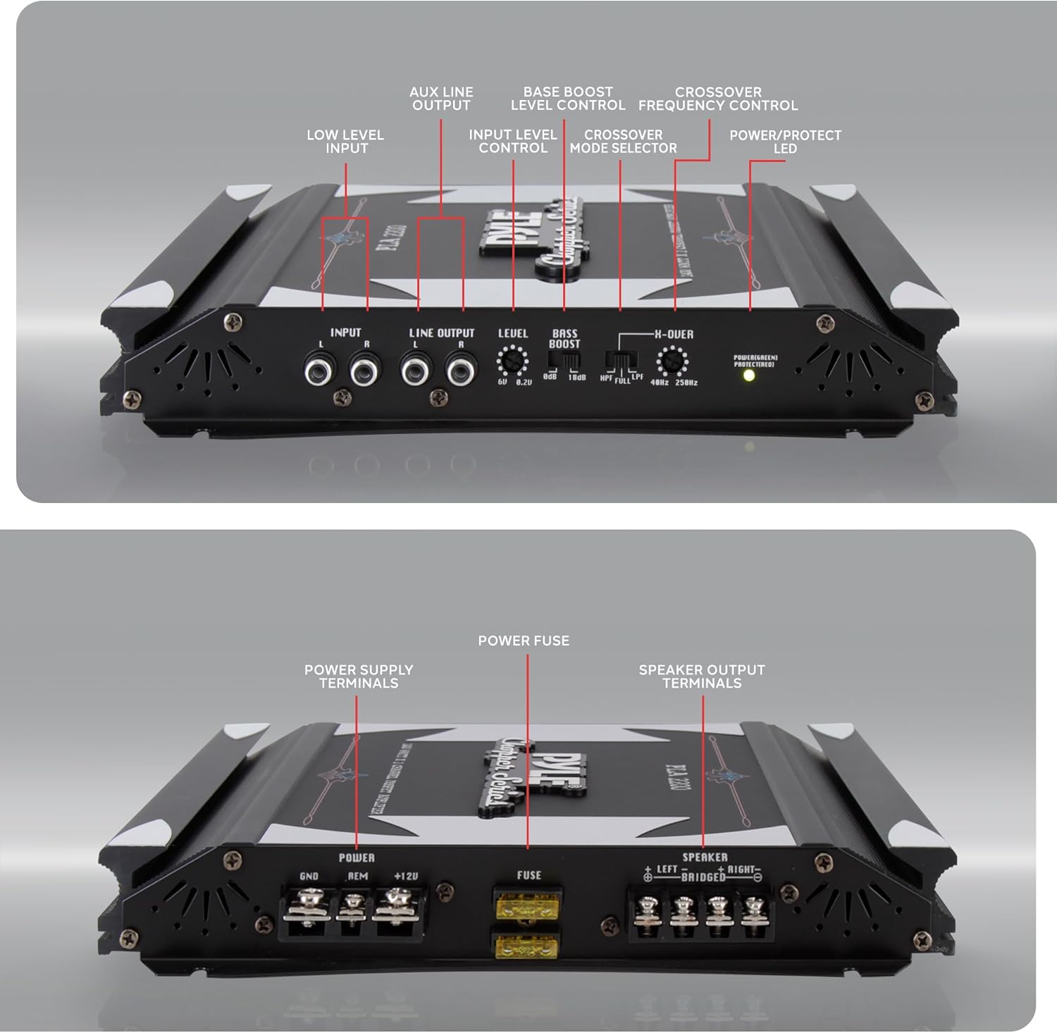 - 1400 WATT POWER: The Pyle Dual Channel Car Amplifier is perfect for your vehicle's sound system. Gives you up to 1400W bridgeable output. Features switchable bass boost, variable gain control, configurable electronic crossover network