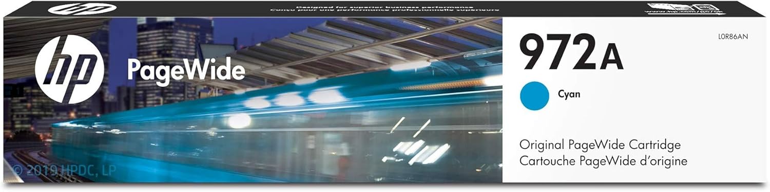 HP 972A PageWide Cyan Ink Cartridge for HP Printers | Works with Printer Series: PageWide Pro 452, 477, 552dw, 577 | L0R86AN