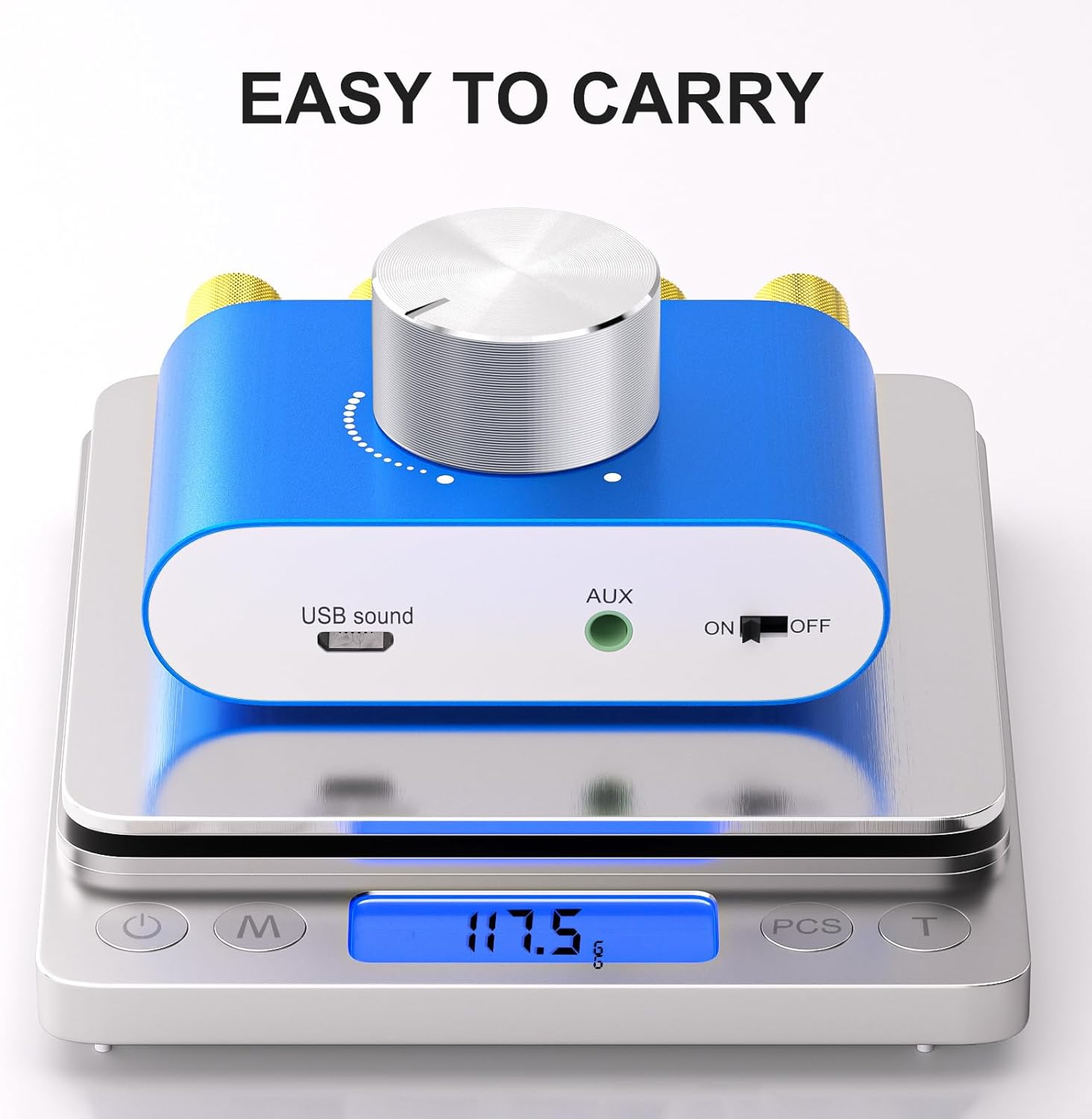 - 【Truly Amplified Your Music Experience】-- This little powerhouse delivers crystal-clear stereo sound that belies its size. The 80W×2 channels fill your space with rich, high-fidelity tunes, effortlessly streaming via Bluetooth from devices or connected through the handy AUX/USB inputs. Don’t let its size fool you. It has a high quality feel and sounds wonderful. The small size means you can tuck it right under one monitor, leaving the volume control handy and taking no desk space.