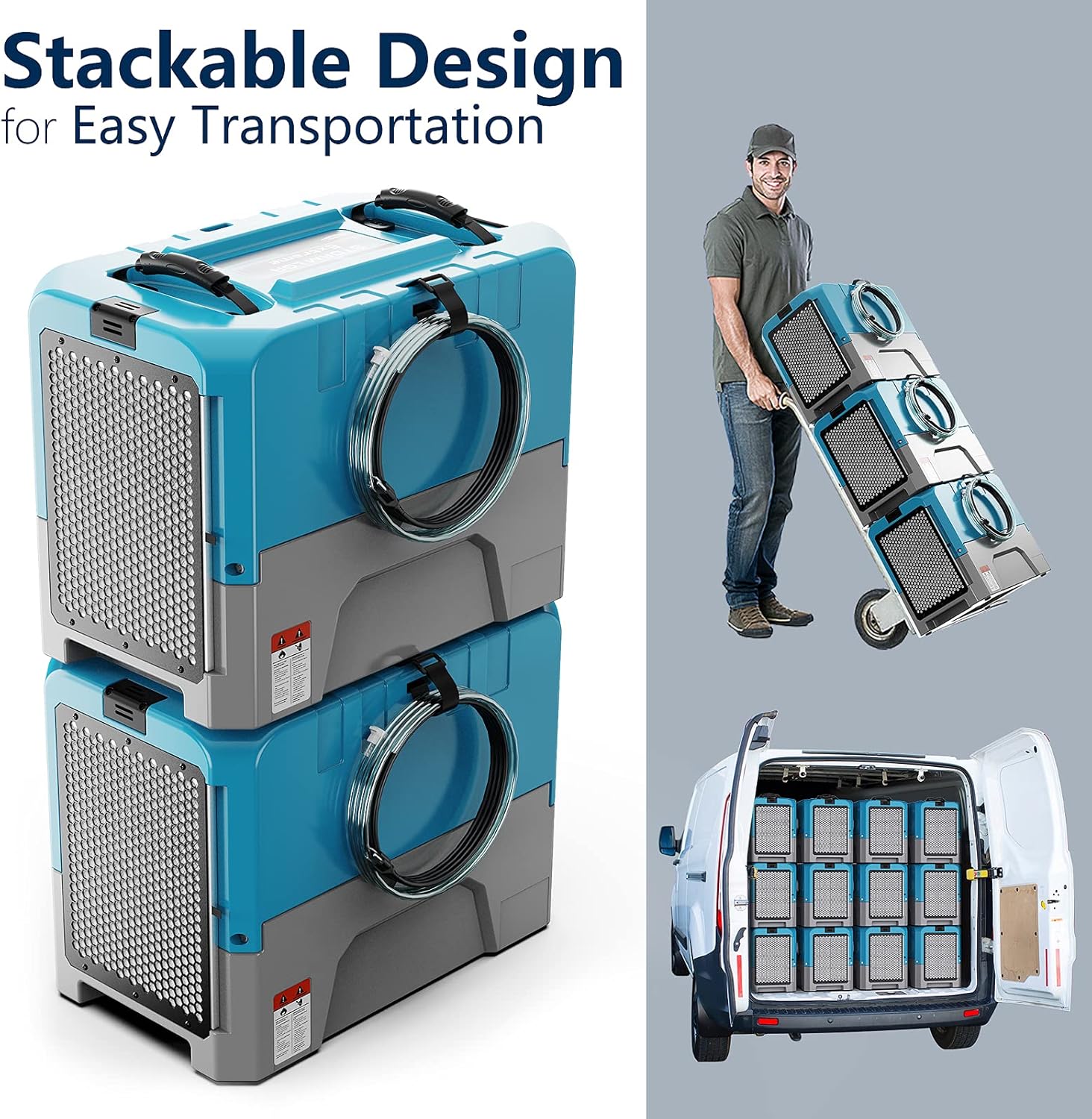 - âăDehumidifier with Pump for Easy Drainageă: This commercial dehumidifier with pump will automatically drain the condensate out for the low-hassle operation. Plus, the 19.6 ft long drain hose and 14.7 ft drain vertical height maximize the flexibility of installation.