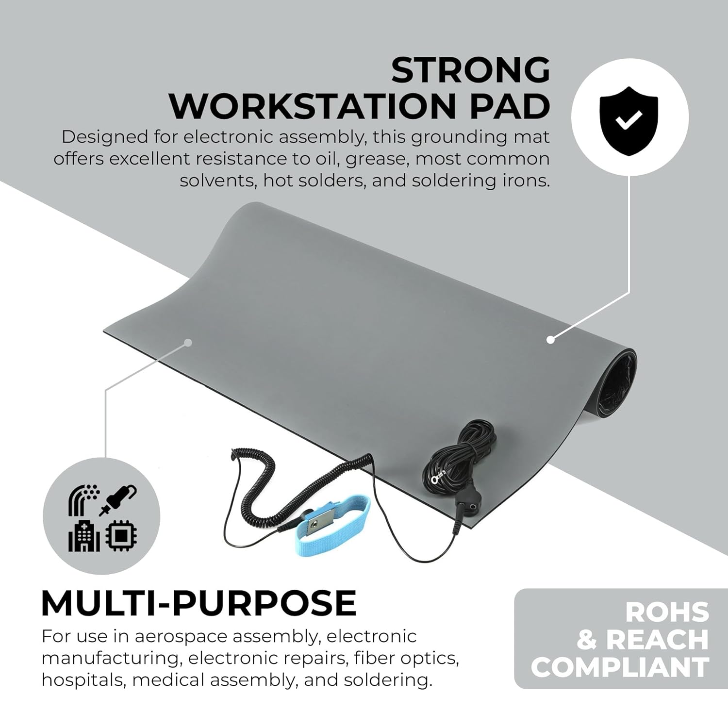 MWRF ESD Mat Kit with Wrist Strap and Grounding Cord (2 FT x 4 FT x 0.12 Inch, Grey) - MWRF Source