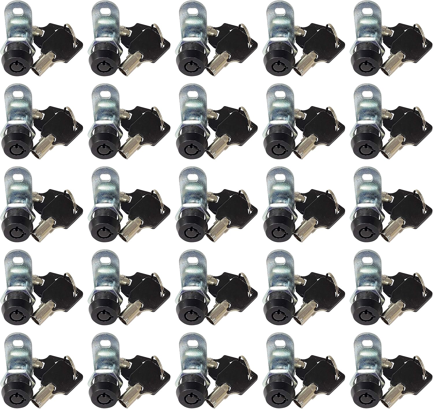 Admiral Locks Tubular Cam Lock, Keyed Alike Removable Key RV Compartment Storage Lock Cabinet Locks (Black Pack of. 25, 5/8" 90°)