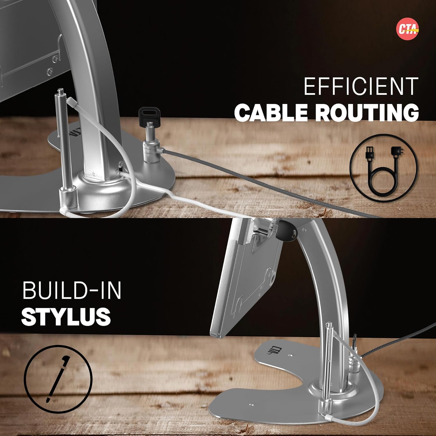 - | ACCESSORIES | Includes a stylus with elastic tether and a steel cable lock for enhanced security, ensuring your iPad stays protected while in use at the kiosk.