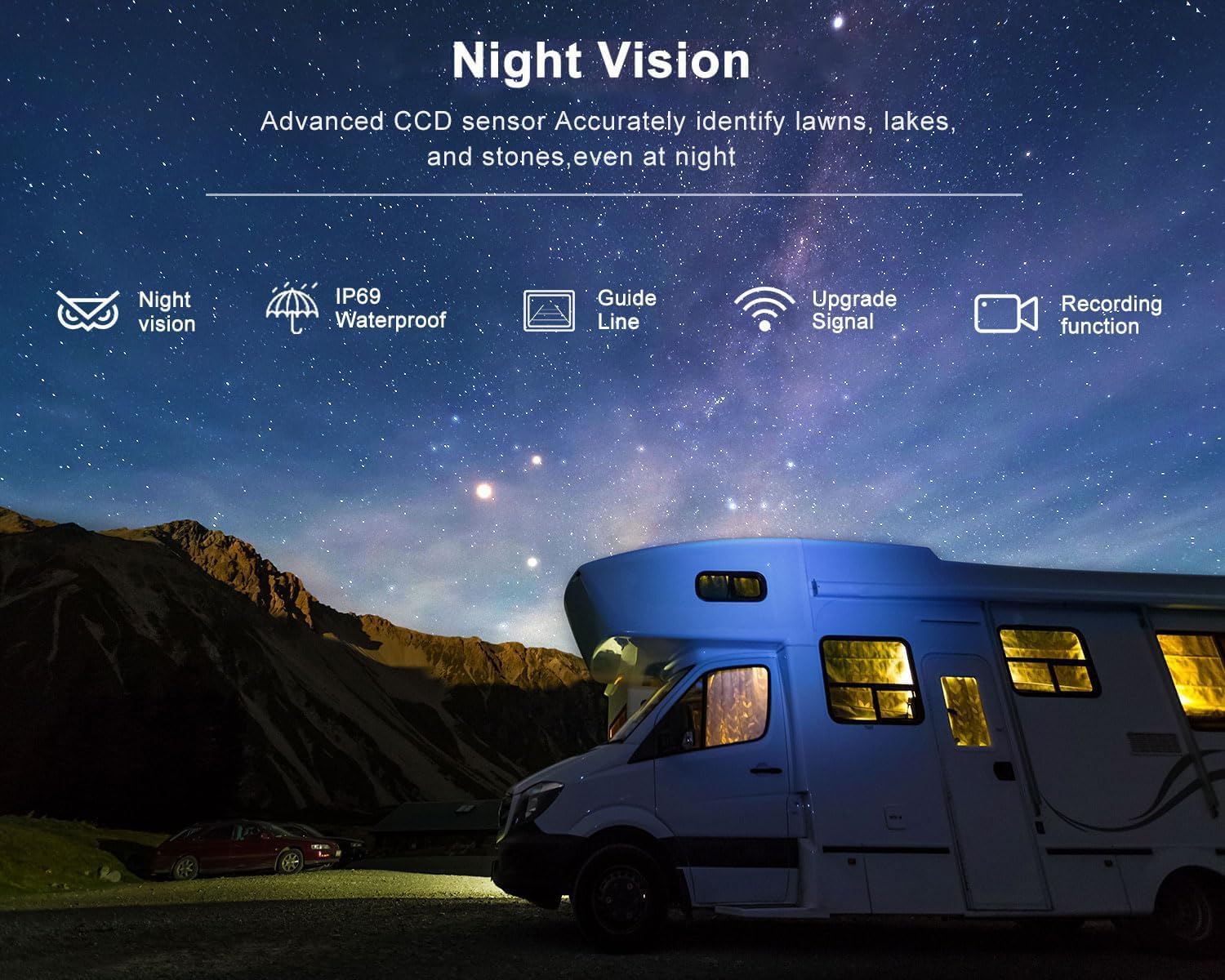 - ☆【Easy Installation & Wide Application】Wire camera to running light / tail lights/reverse lights to observe, Cigarette Lighter/ACC/Fuse/Radio can power monitor, Just connect power source and install antenna, you can start to use. Accommodate a large variety of vehicle as RV/Camper/Truck/5th Wheel Trailer/Bus/Van/Pickup.