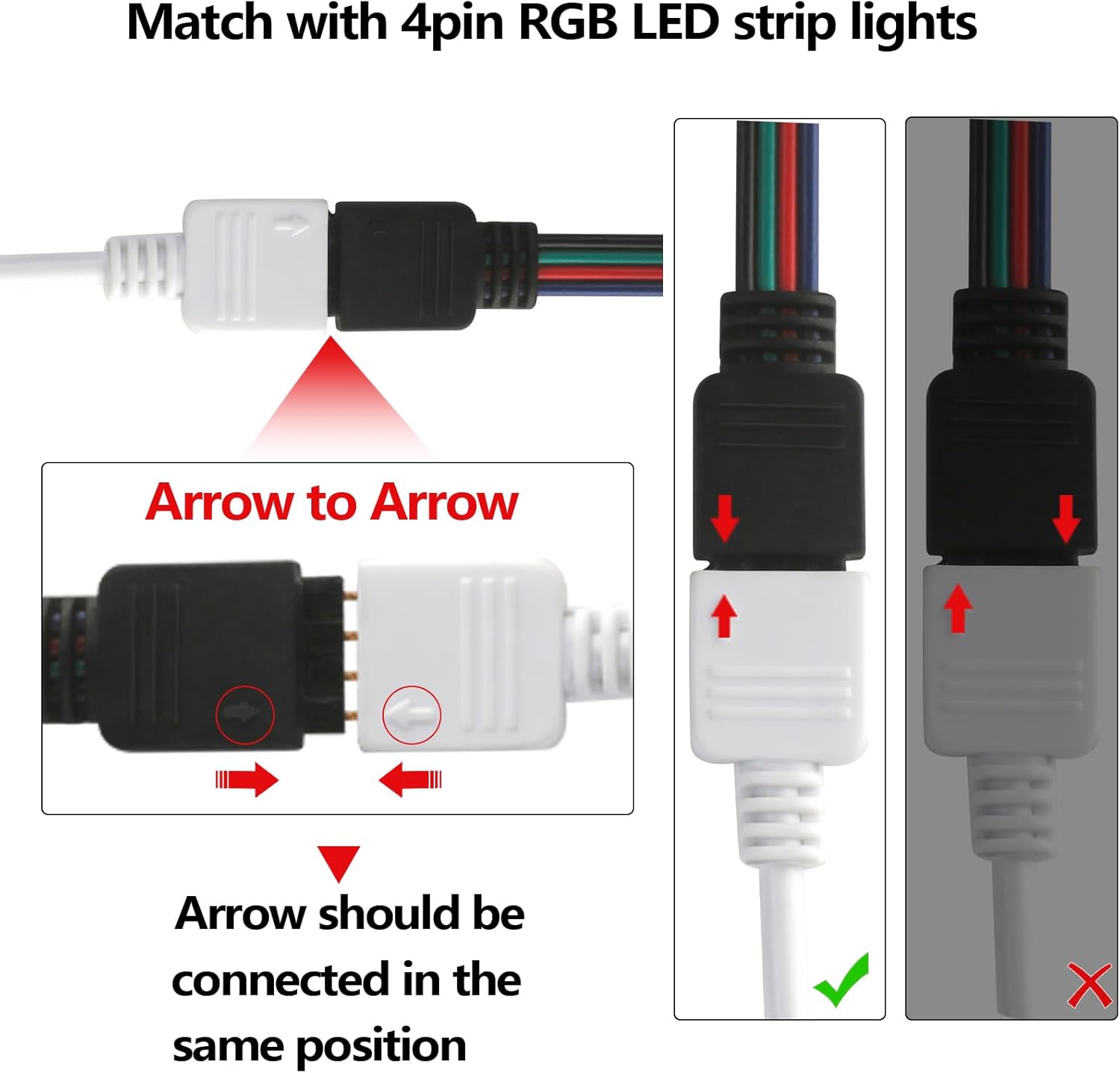 - ăKindly CompatibleăWork with 5050 2835 3528 RGB led light strips with 4-Pin connectors, and US Power Supply Adapter is included(Input: 100-240V 50/60Hz, Output: DC 12V 3A).