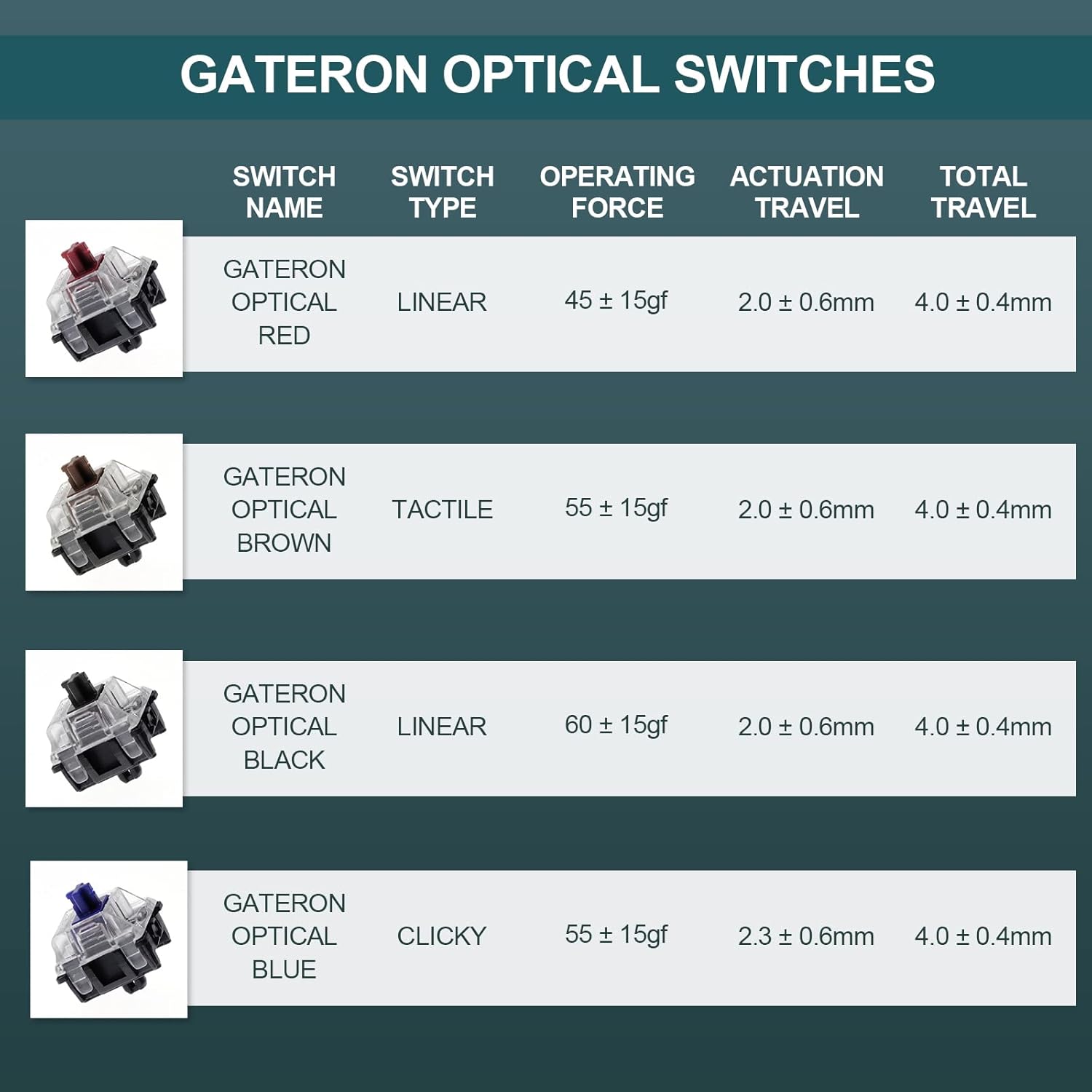 - 【Hotswappable Gateron Optical Switches】SK61 keyboard is equipped with hot swappable terminals, with which you could install other types of optical switches directly without soldering. It can extend keyboard lifespan to some degree and also ensures more fun