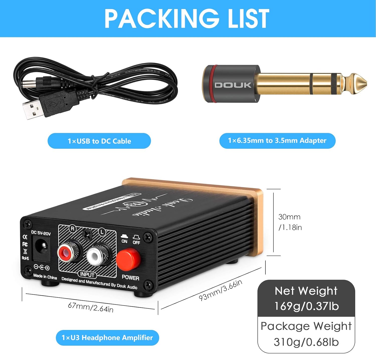 Douk Audio U3 Headphone Amps, Mini Hi-Fi Amplifier for Home Desktop PC 6.35mm / 3.5mm Headsets, Class A, RCA Input, DC 5V