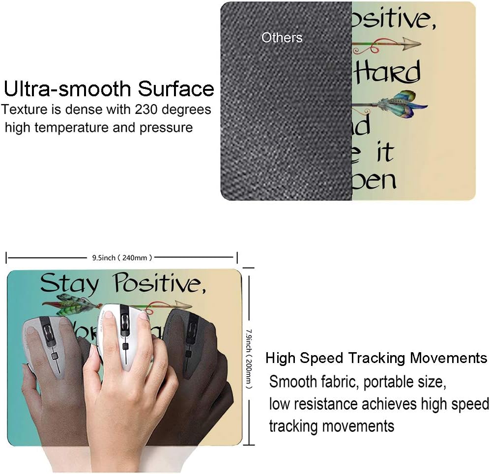 Gaming Mouse Pad,Stay Positive Work Hard and Make It Happen Mouse Pad Non-Slip Rubber Base Inspirational Mouse Pads for Computers Laptop Office, 9.5"x7.9"x0.12" Inch(240mm x 200mm x 3mm)