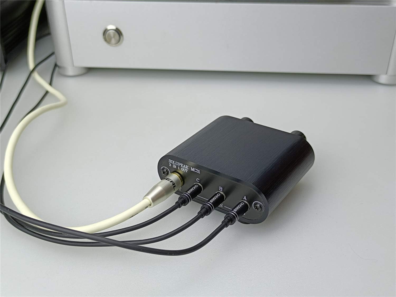 - 3 IN 1 OUT 3.5mm 1/8" aux input output jacks.