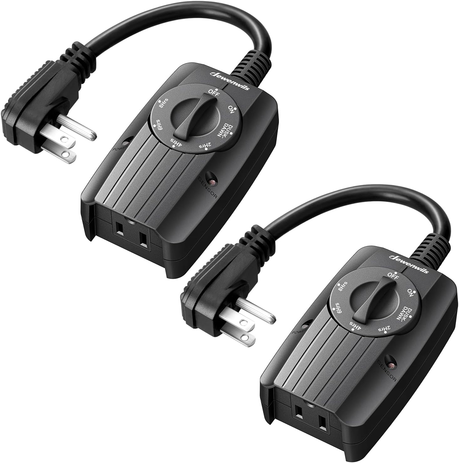 DEWENWILS Outdoor Light Timer Dusk to Dawn, Weatherproof, Plug in Timer for Garden Christmas String Light, 10A, UL Listed, 2 Pack
