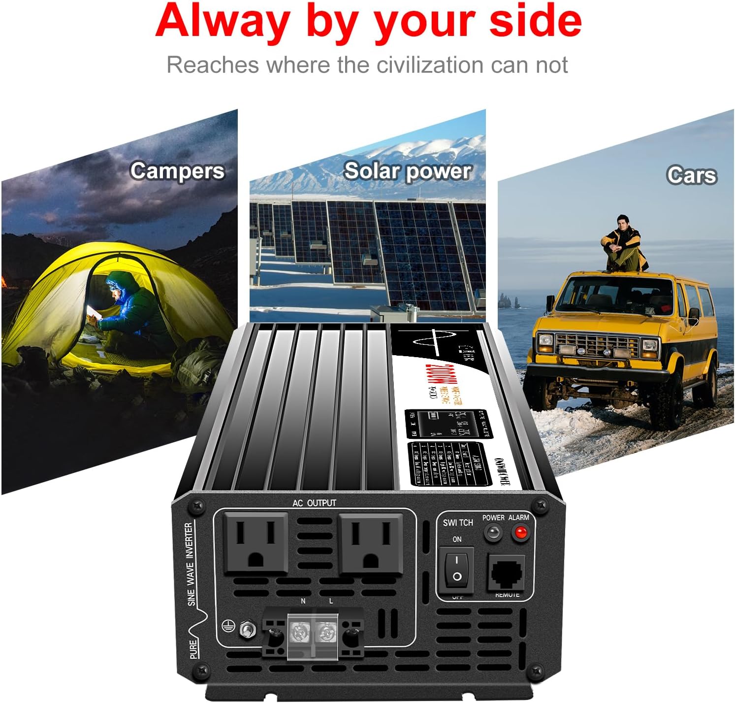 - [True Pure Sine Wave Power Inverter] True rated continuous 2000Watts pure sine wave output power and 4000 Watts peak power.LCD display.Perfects for off-grid system,Lower THD,Less wear,Strong inductive Loads Capability.It has little interference with radios, communication and precision equipment.It's also recommended by most cordless tool manufacturer that a pure sine wave inverter is used to ensure long battery life.