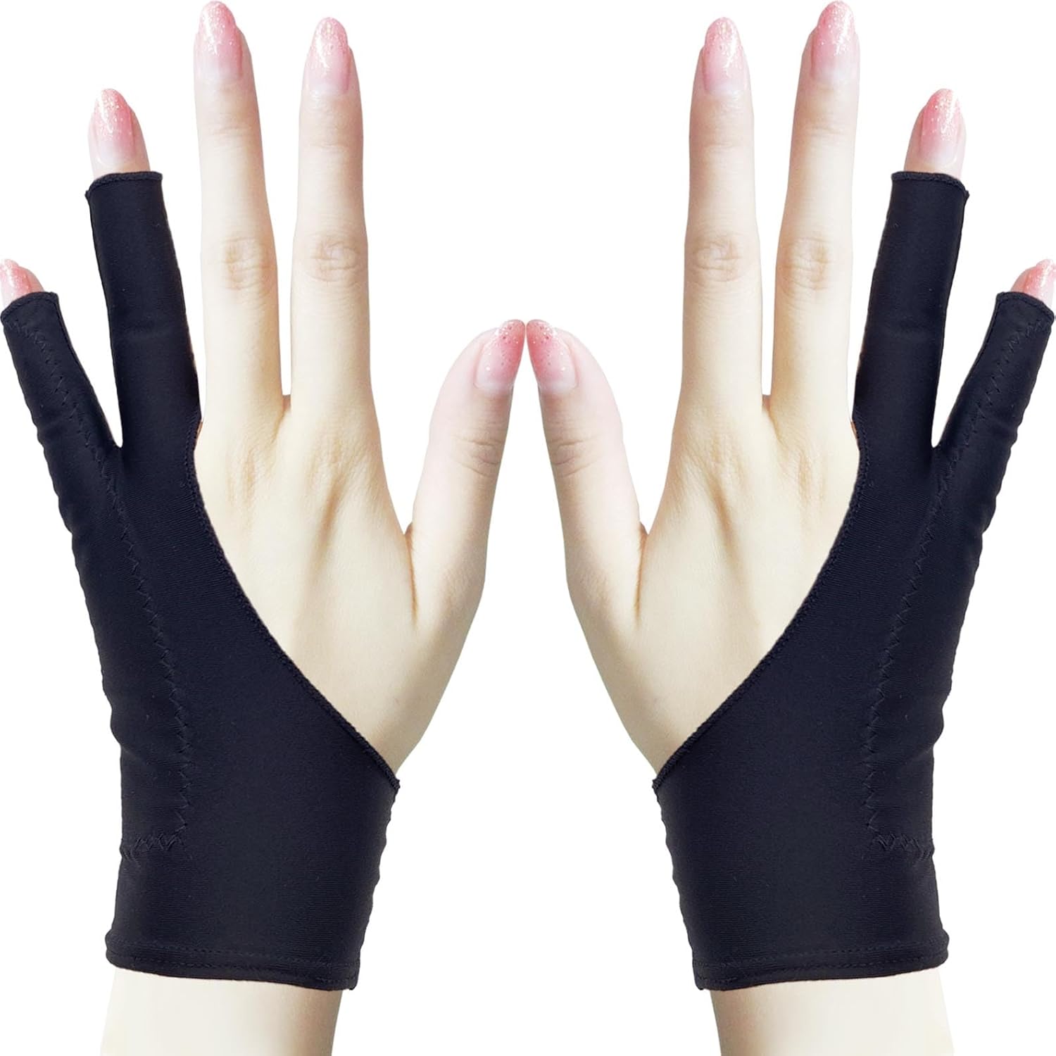 Drawing Glove, Artist Glove for Drawing Tablet, iPad, Digital Art Creation - Palm Rejection, Exposed Fingertip, Suitable for Left and Right Hand - S, Pack of 2
