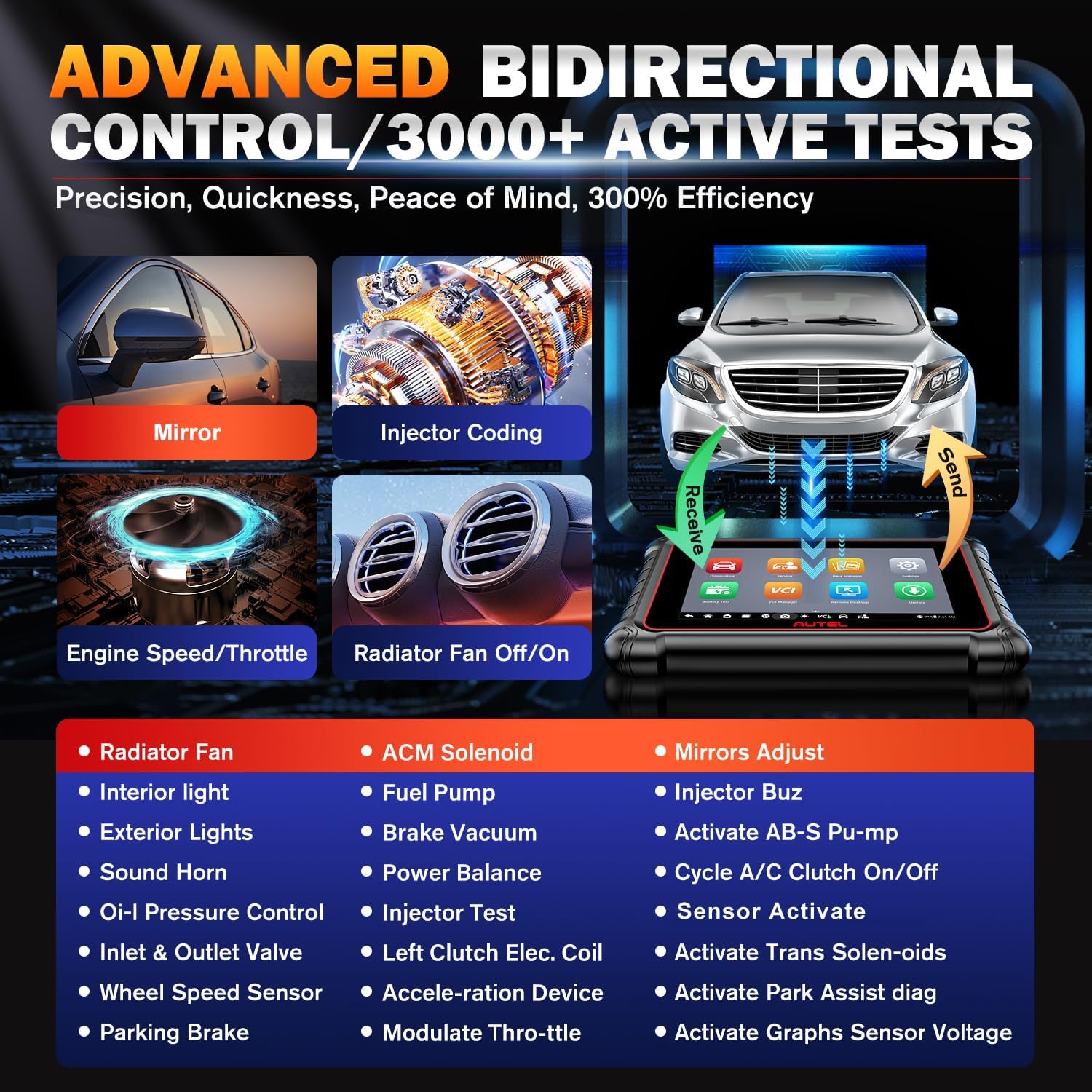 - 🚗【3000+ ACTIVE TESTS (50➡3000+), SAME AS MS906 PRO】Differ from MS906BT MS906 MP808 MK808 MX808 MK808BT only 50 tests, Autel scanner MK900BT escaner automotriz professional offers 3000+ active tests, it can send command to ECUs & monitor actuators operation, quickly locating faulty components. Bidirectional scanning takes your diagnostics to the next level with menu lists 3000+ active tests, such as windows, rear mirrors, sunroof, wipers, fuel injector, coolant fans, radiator fan, AC clutch, coolant pump and more. Note: Functions are not available for all vehicles, please send vehicle VIN to us check compatibility.