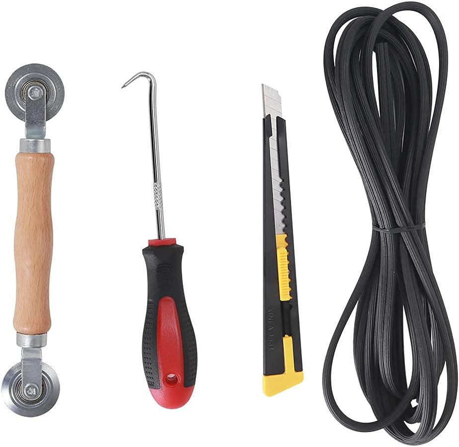 4 Pack Screen mesh Repair Rolling Tools Set for Window/Door Screen Replacement Include Spline Roller Tool with Wooden Handle and Steel Bearing Wheel/Screen Retainer Spline/Hook/Cutter (20'Spline)