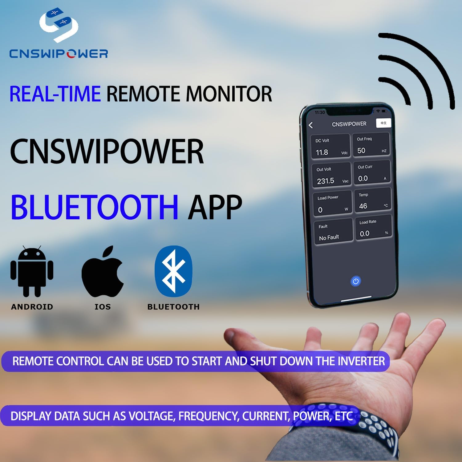 - 【LCD display and remote controlIer】inverter with remote control: The cable is 5 meter long, and the long cable will help you easily control the on/off of the inverter. The LCD display is easy to observe the input voltage, output power and protection mode.
