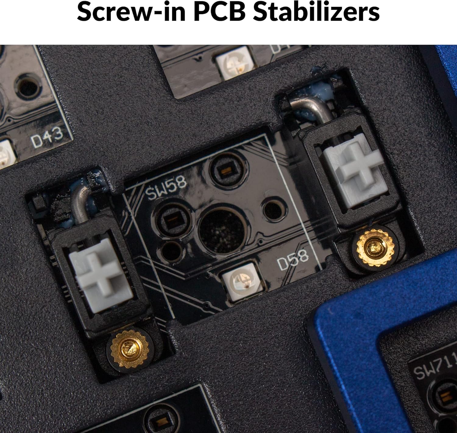 - Hot-swappable: The hot-swappable sockets are compatible with almost all the MX style 3pin and 5pin mechanical switches on the market (including Gateron, Cherry, Kailh, etc.). , you can hot-swap the Q5 Barebone Knob version without soldering. The big keys’ (space bar, shift, enter, delete) typing experience is now more stable and smooth with the new screw-In PCB stabilizers.