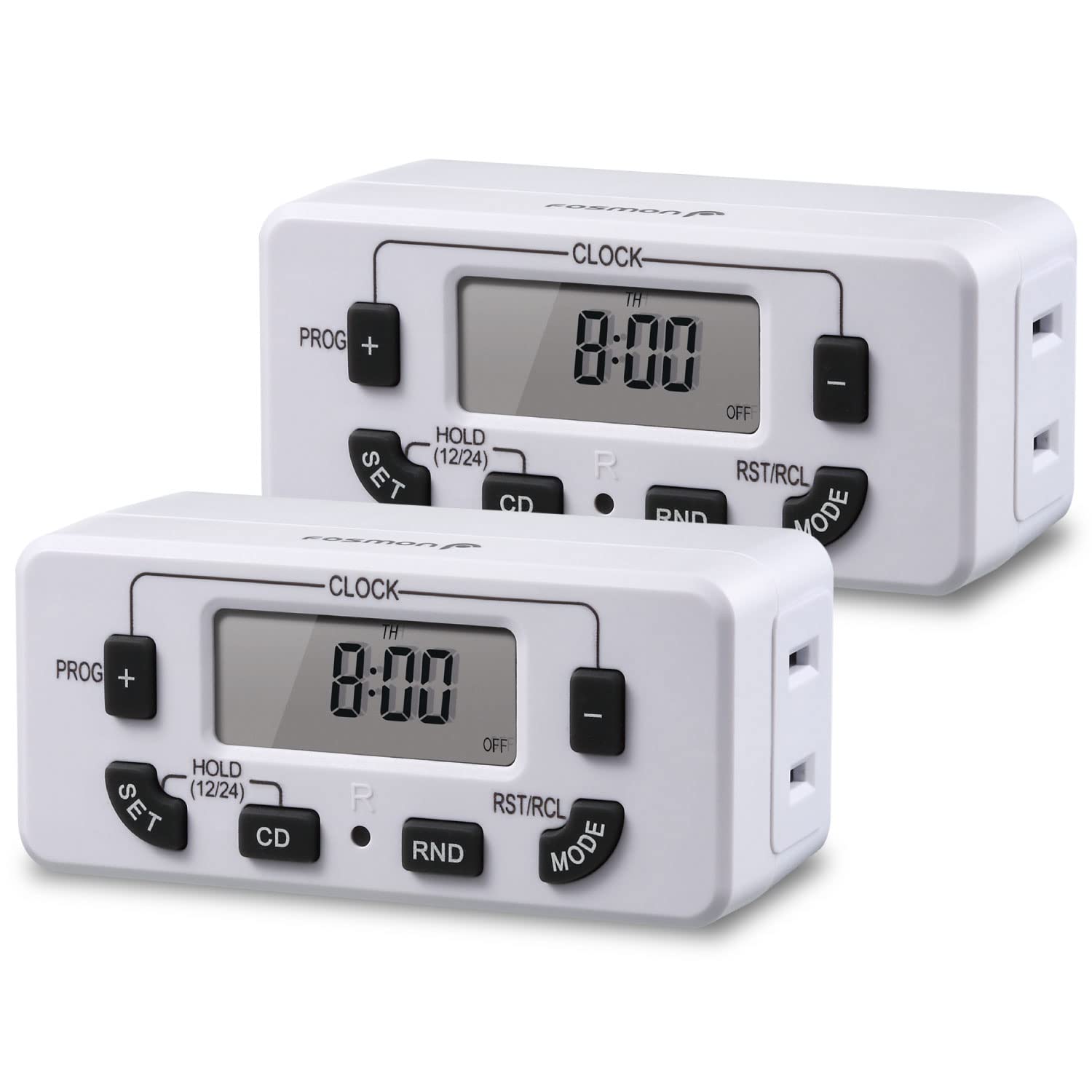 Fosmon 7 Day Digital Timers for Electrical Outlets, Indoor Plug-in Light Timers Switch Programmable, Electric Wall Plug for Grow / Reptile Light, Lamp, Appliance, Aquarium, Fish Tank - 2 Pack