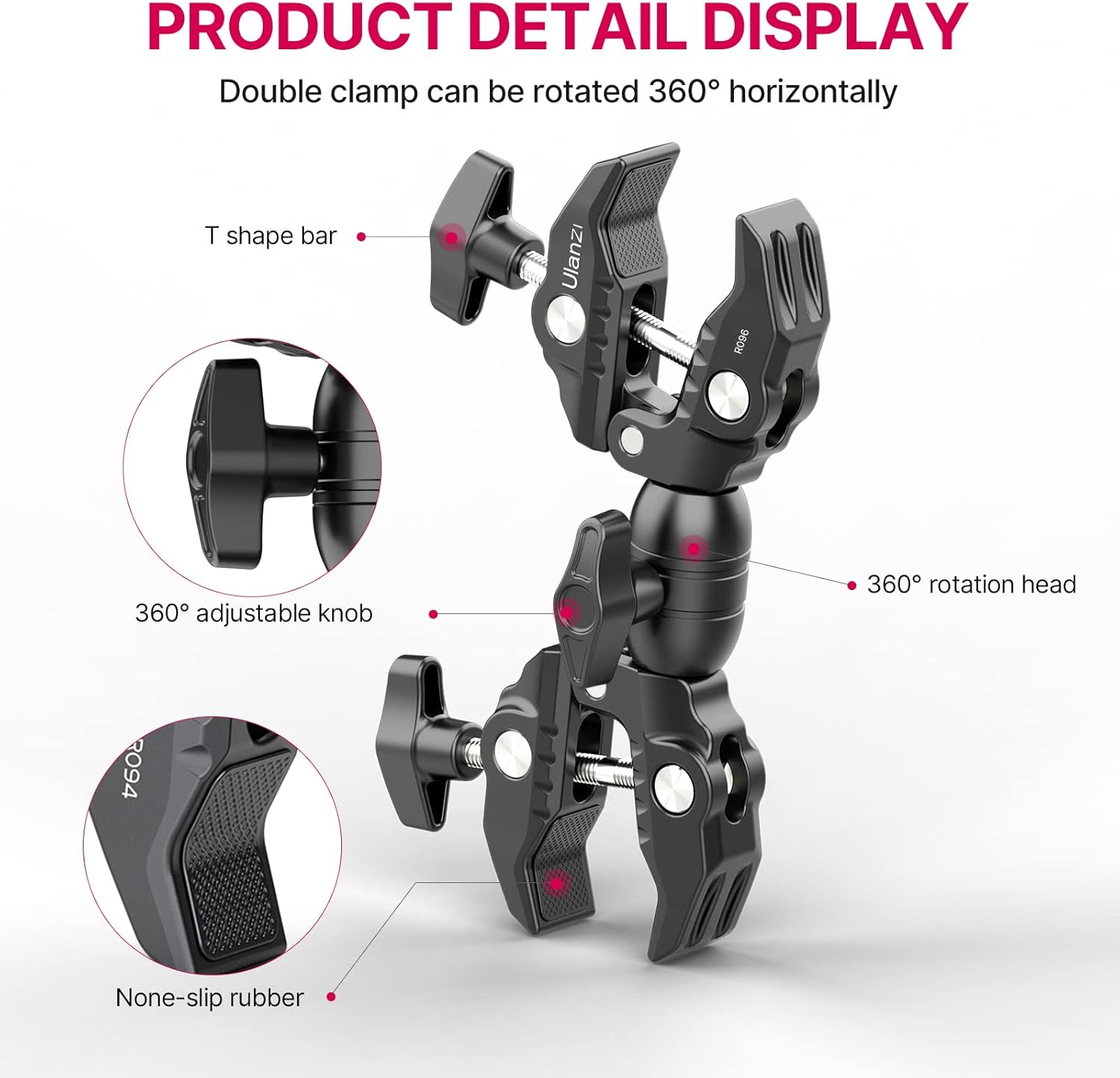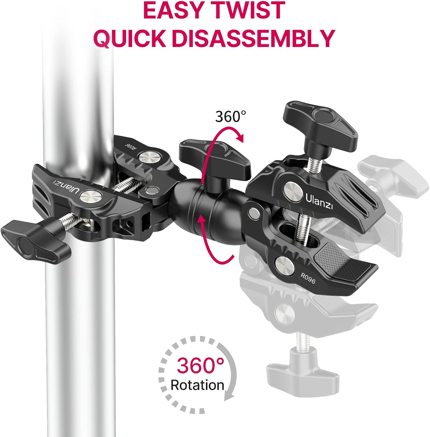 ULANZI Super Clamp Double Camera Clamp, R096 Crab Plier Clip Bracket Mount Monitor Magic Arm Double Ball Head Adapter for Photo Studio Light Stand, Photography Reflector, Photo Boom Stand, Cross Bars