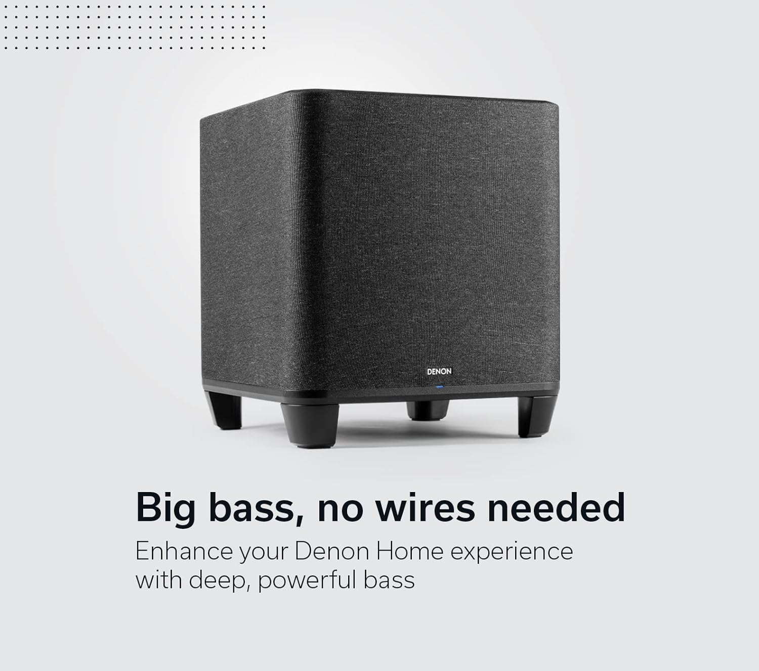 - WIRELESS SUB WITH HEOS BUILT-IN - An excellent upgrade to the Denon DSW-1, the Denon Home Subwoofer wirelessly connects to all Denon products with HEOS built-in, including AVRs, Hi-Fi systems, sound bars, and speakers for a complete home theater setup.