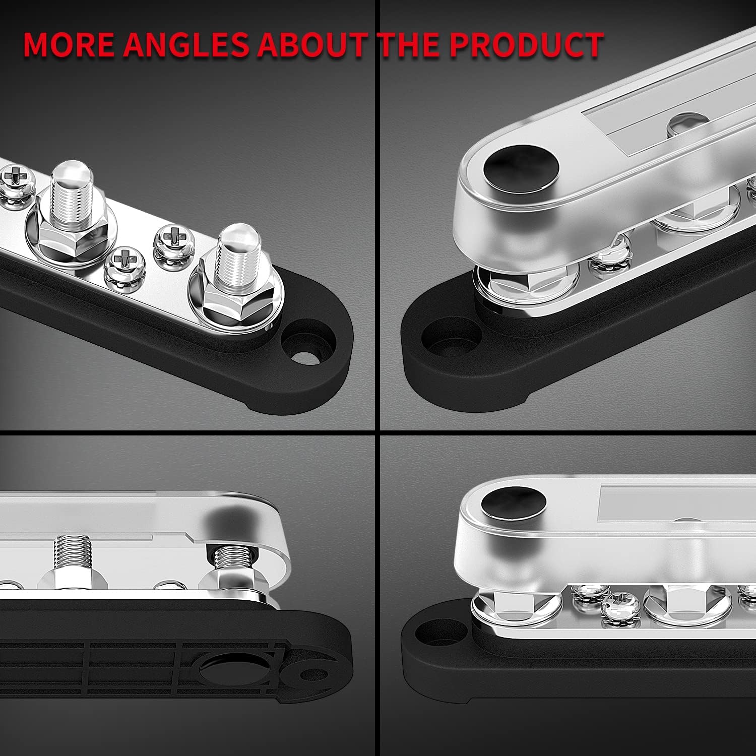 - 【Terminal】- Negative bus bar 12v marine, 4 x M8 (5/16")terminal studs and 6 x M4 (#8) screw design.