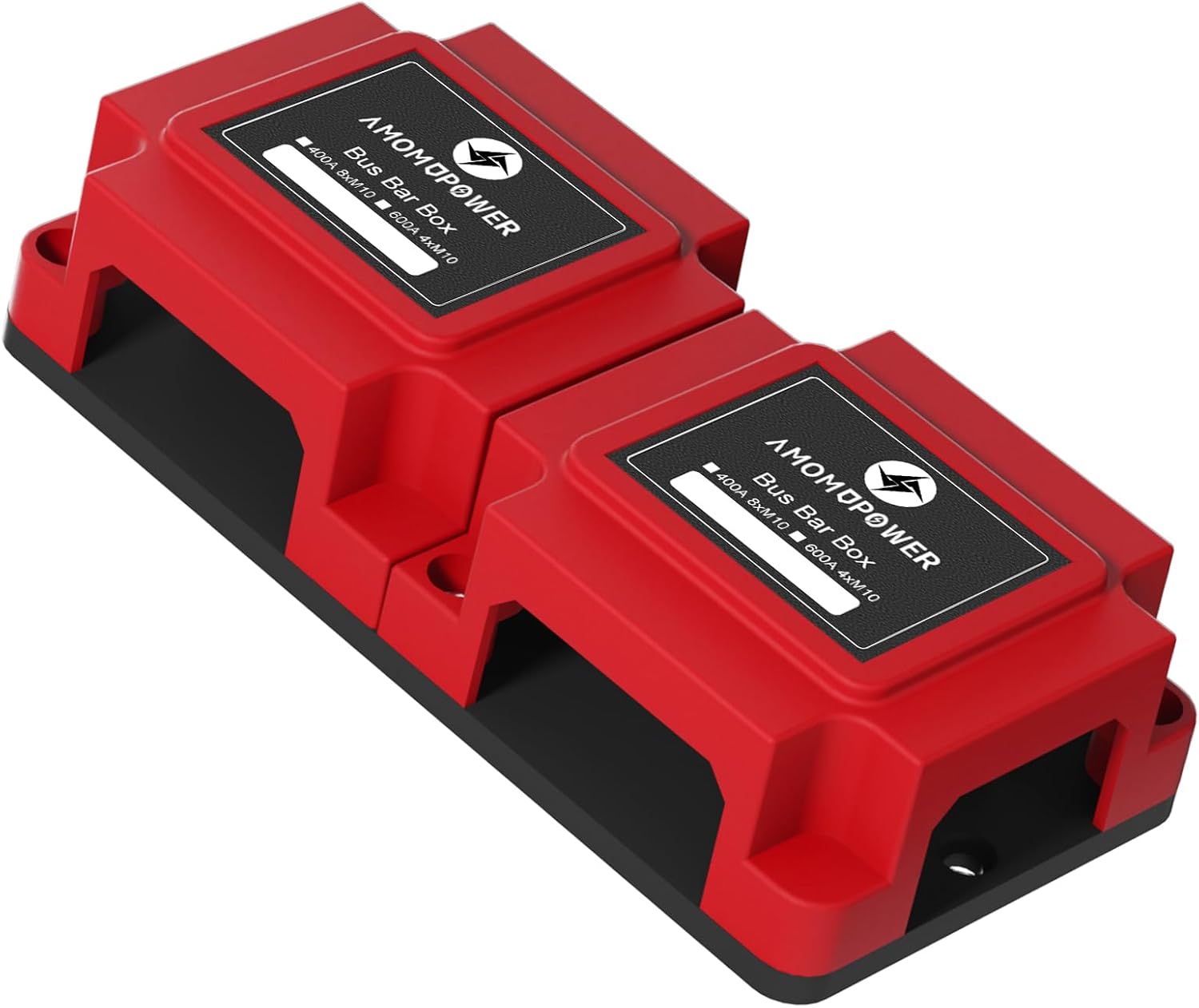 400A Bus Bar 8 M10 (3/8 inch) Terminal Studs Modular Design Tin Plated Copper Distribution Block Positive Pole Electrical Buss Bars 12-48 V DC with Cover for Trailer Marine Boat Car RV