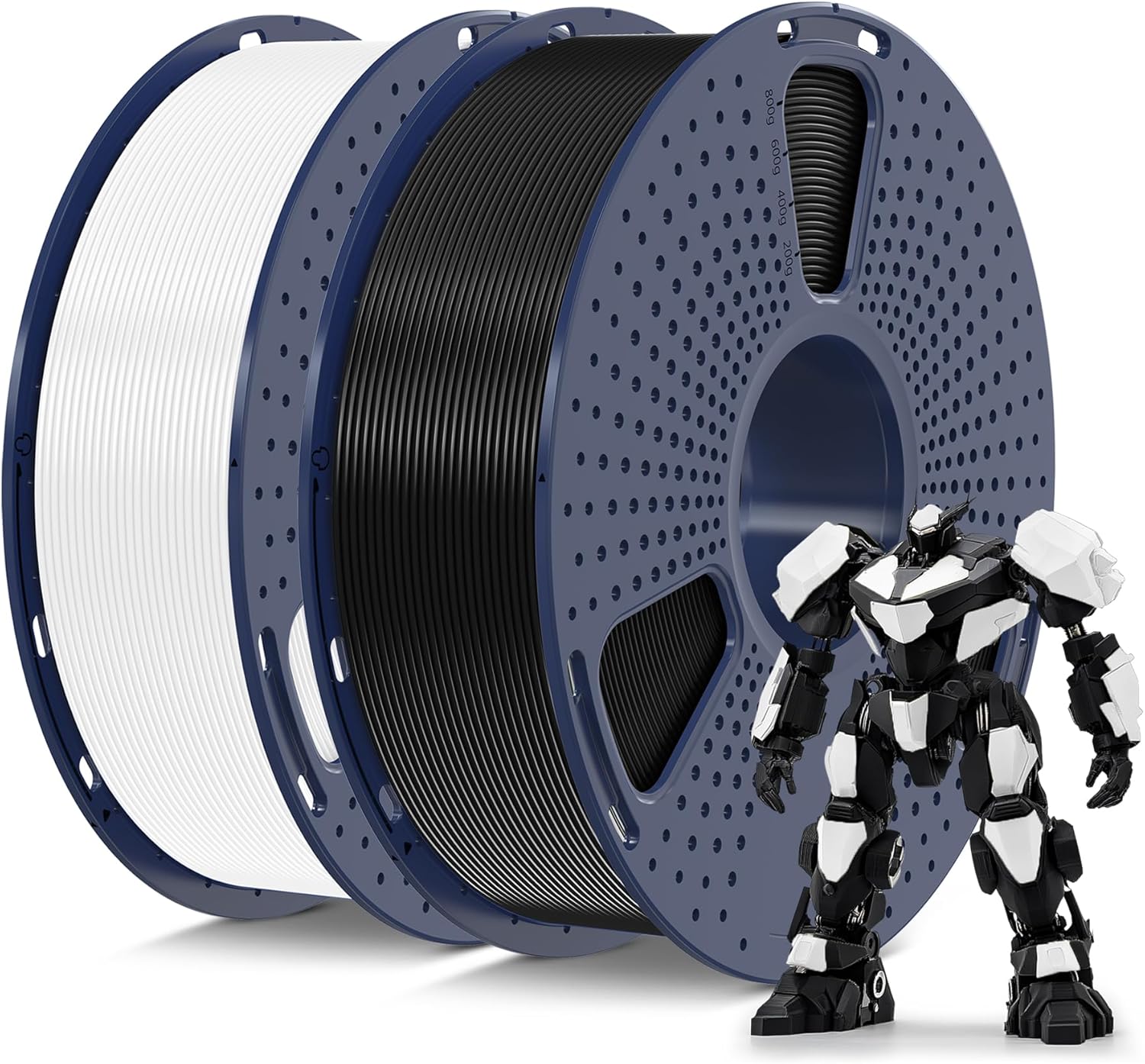 SUNLU PETG Filament 1.75mm Bundle, Less Stringing and Good Layer Adhesion 3D Printer Filament, Individually Vacuum Packed, 2kg in Total, 1kg per Spool, PETG 2 Pack, Black+White