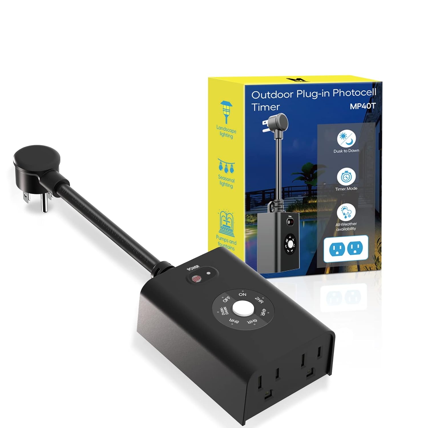 - Smart Dusk-to-Dawn Light Sensor: The built-in photocell sensor automatically turns lights on at dusk and off at dawn, offering hands-free lighting control for your yard, porch, or holiday decorations. No more manual switching—just set it and forget it