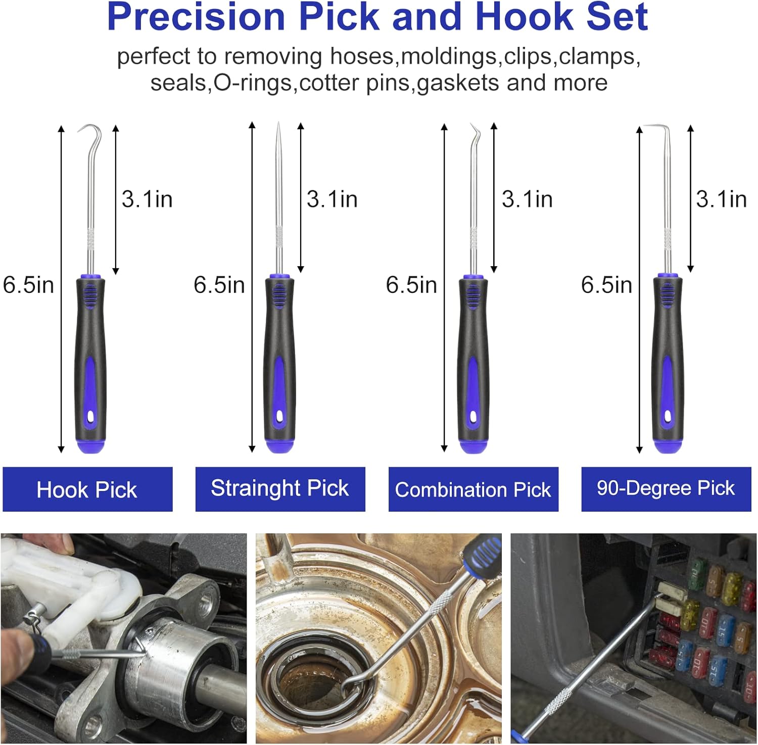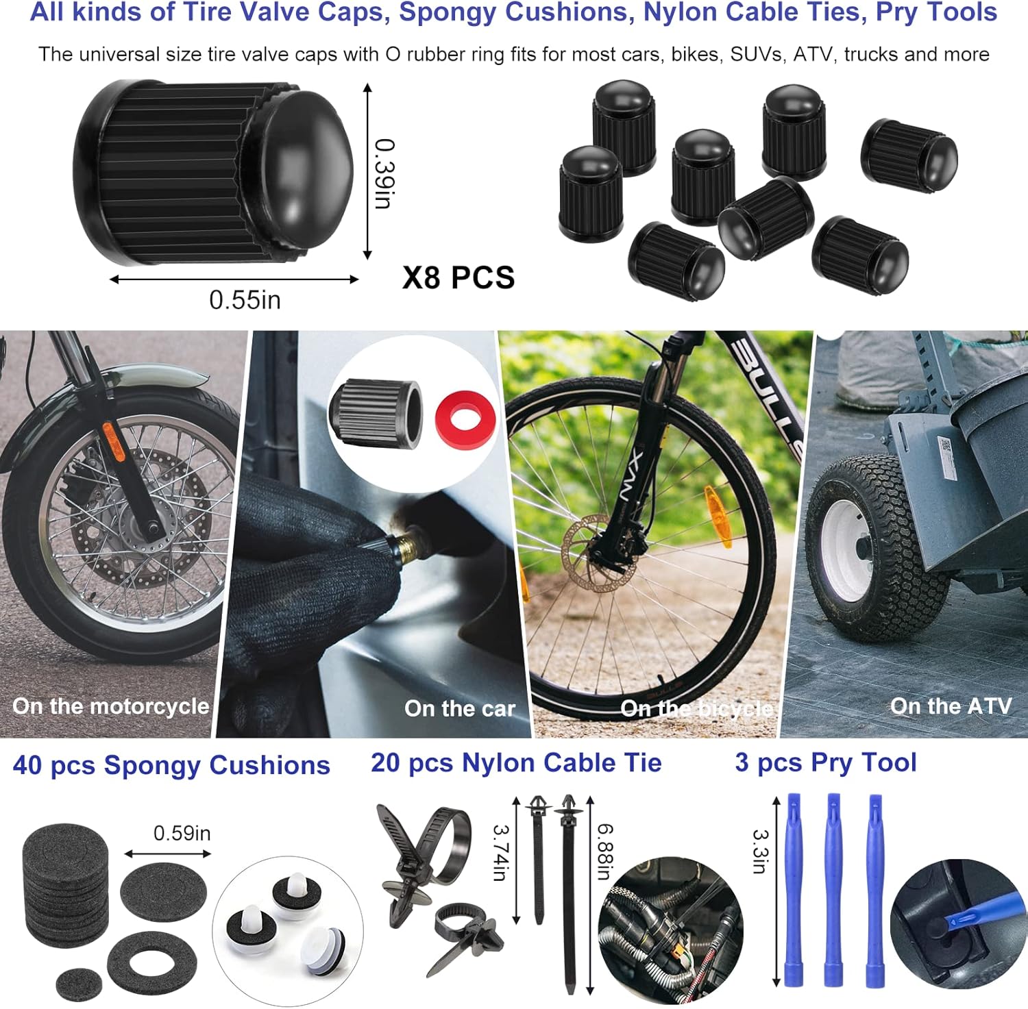 - [MULTI-USE]: 4pcs oil seal removal hooks is perfect to removing hoses, moldings, clips, clamps, seals,O-rings,cotter pins, gaskets and more. Widely and durable used adhesive cable clips is great for car, computer/ TV cables, power cords, USB cables, network cables and etc. Nylon Cable Ties Keep your car neat and organized. Tire Valve Caps is widely used in car repair shops and cap replacement for home vehicle tire. Spongy cushions allow for more secure installation of rivet fasteners