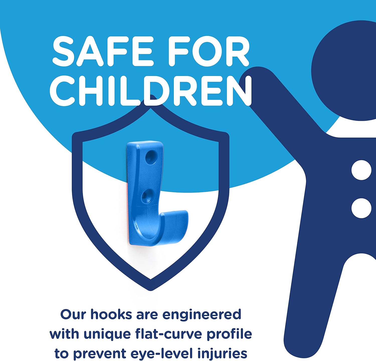 - Safe, Curved Design: With little kids racing around at the speed of light, there’s bound to be an accident or three. No need to worry, mom and dad – you won’t find sharp edges here! Featuring a soft, curved wall hook that’s gentle to the touch, Toughooks are designed safe for little fingers and eyes.