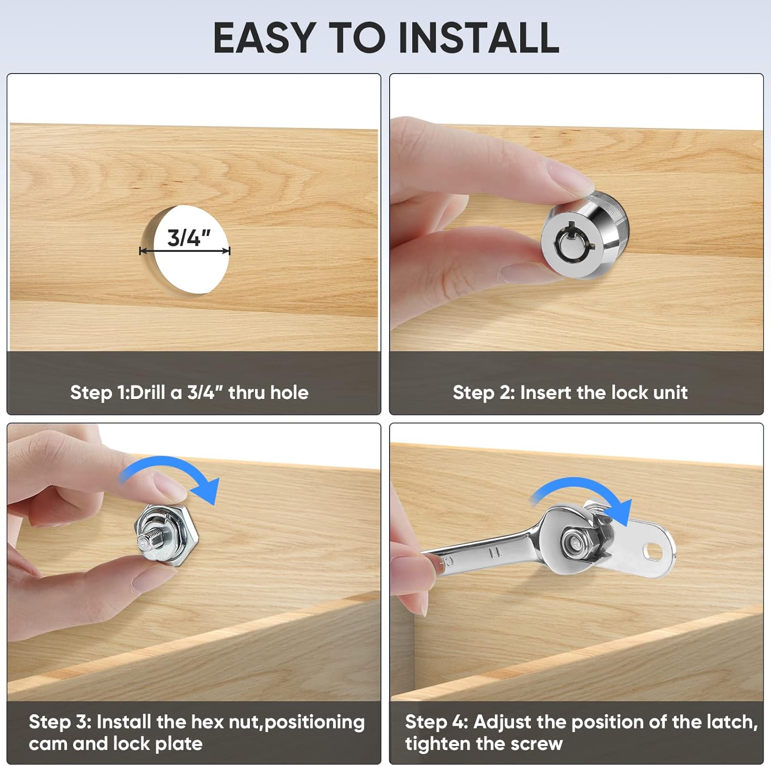 - [ORDERING & INSTALLATION GUIDE] Please refer to the listing images for a complete ordering guide to choose the correct fit and ensure smooth installation. Invest a few minutes to completely upgrade your cabinets or drawers security level, and get a peace of mind for your journeys.
