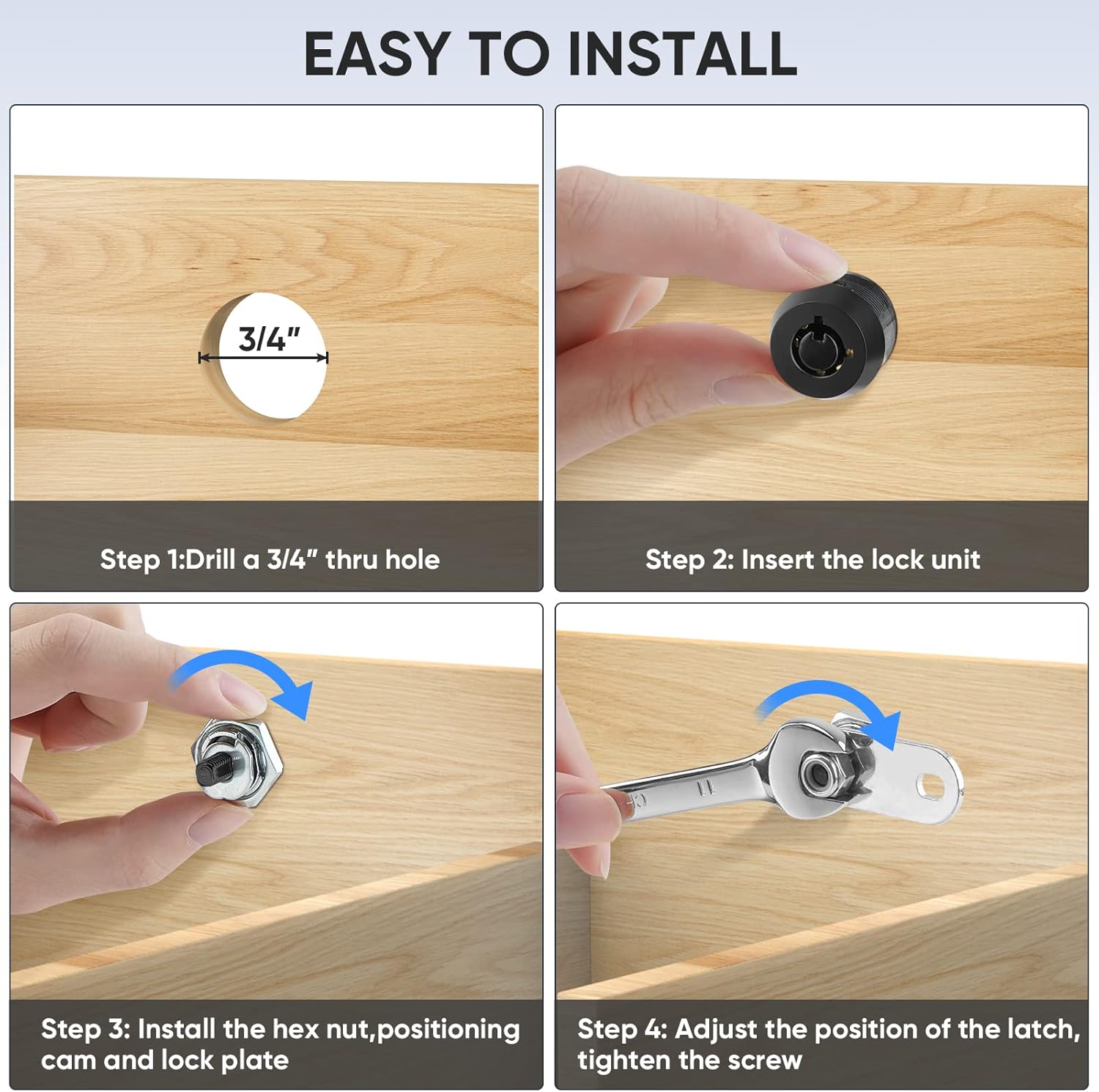 - [ORDERING & INSTALLATION GUIDE] Please refer to the listing images for a complete ordering guide to choose the correct fit and ensure smooth installation. Invest a few minutes to completely upgrade your cabinets or drawers security level, and get a peace of mind for your journeys.