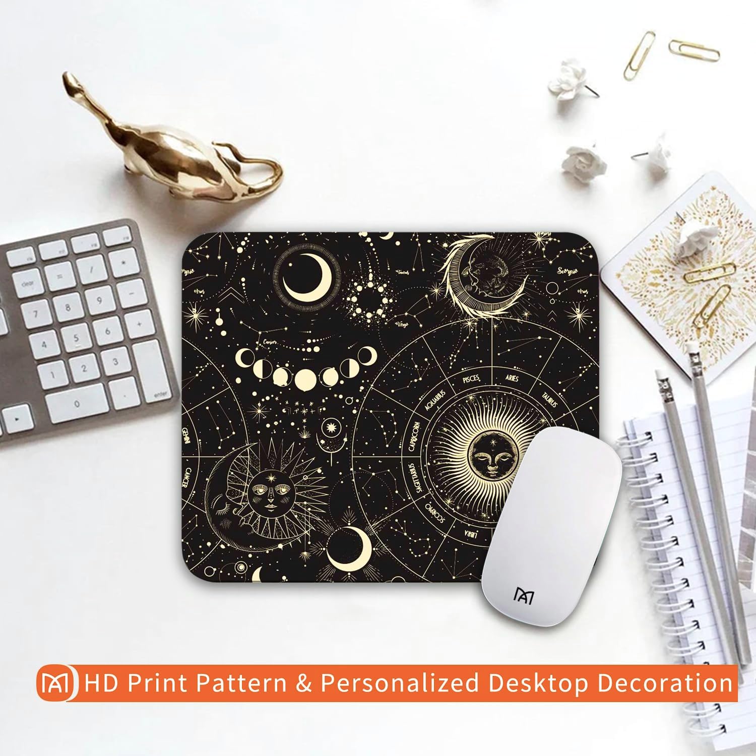 Square Mouse Pad Moon Sun, Personalized Premium-Textured Custom Mouse Mat Design, Washable Mousepad Cloth, Non-Slip Rubber Base Computer Mouse Pads for Wireless Mouse
