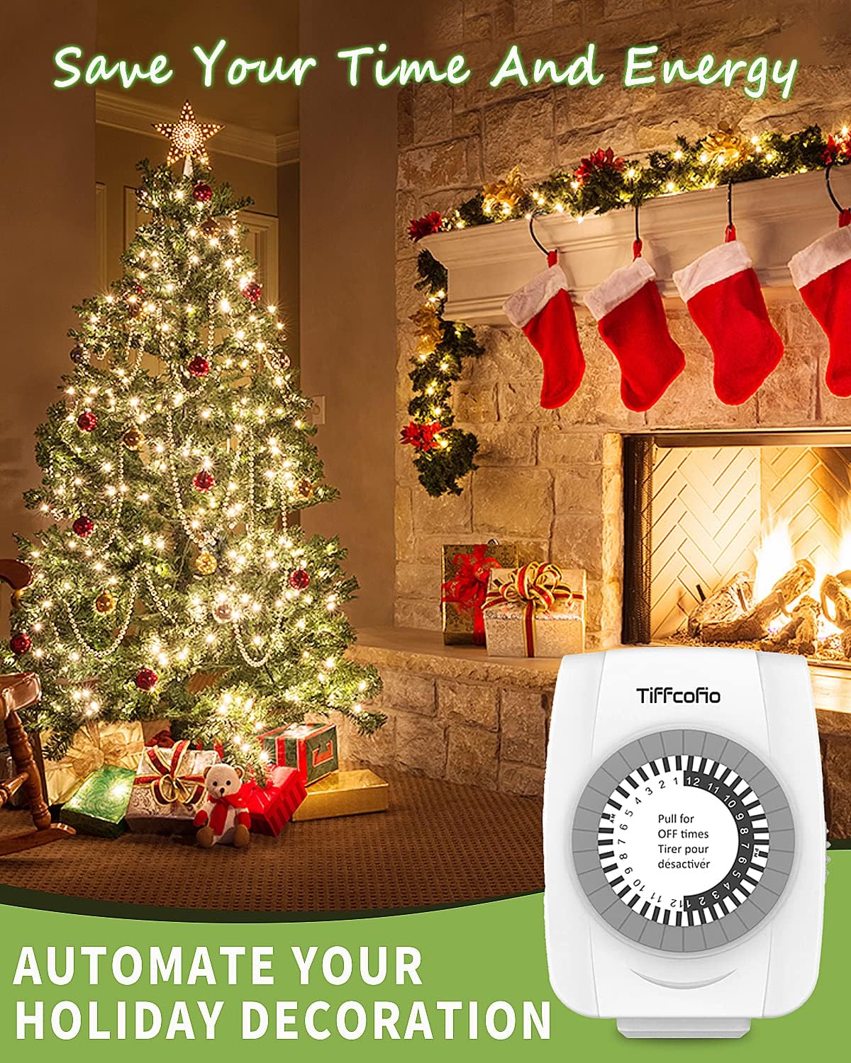 TiFFCOFiO Indoor Mechanical Outlet Timer, 3 Prong Timers for Electrical Outlets, 24-Hour Programmable Plug in Christmas Light Timer, ETL Listed (2 Pack)