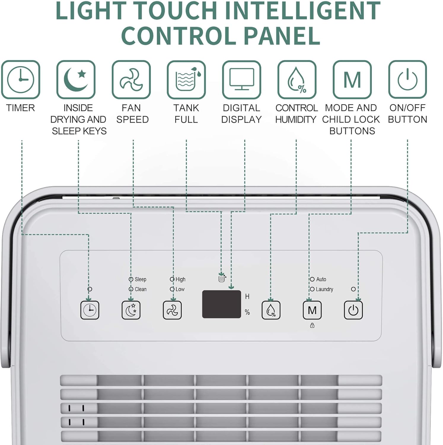 - Multiple Humanized Design: The safety dehumidifier has 2 dehumidification modes (Laundry = continuous mode, Auto = custom mode); Built-in universal wheels and handle, easy to move; Automatic restart and automatic defrosting; Replaceable activated carbon filter makes the air in your home cleaner and fresher