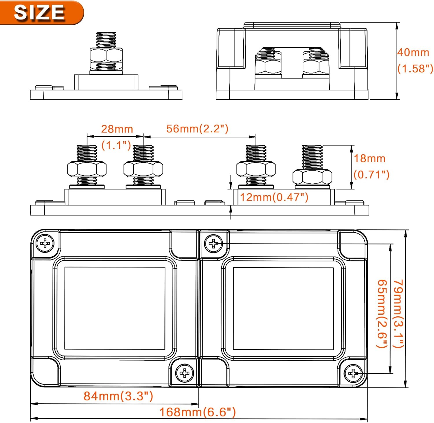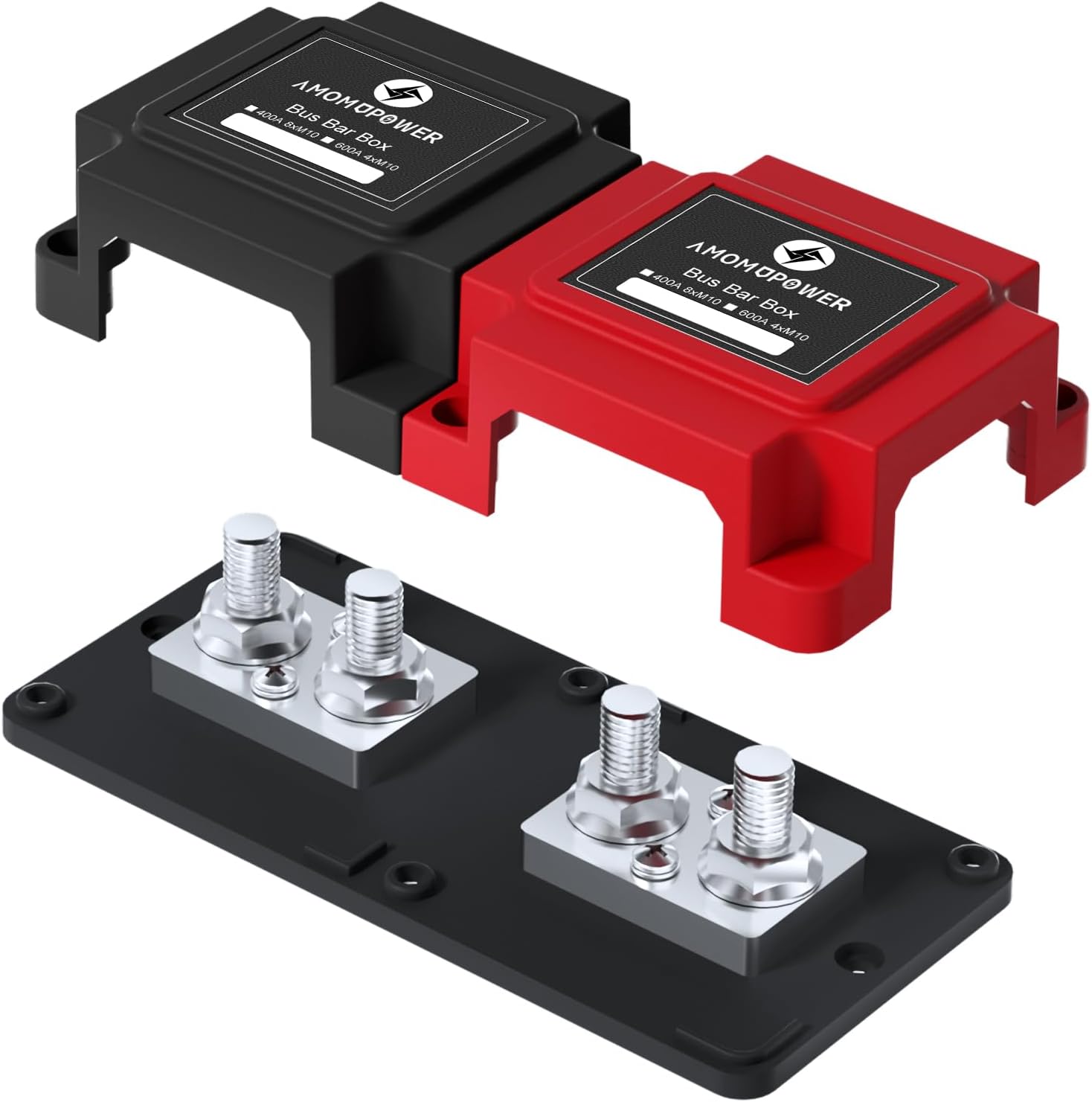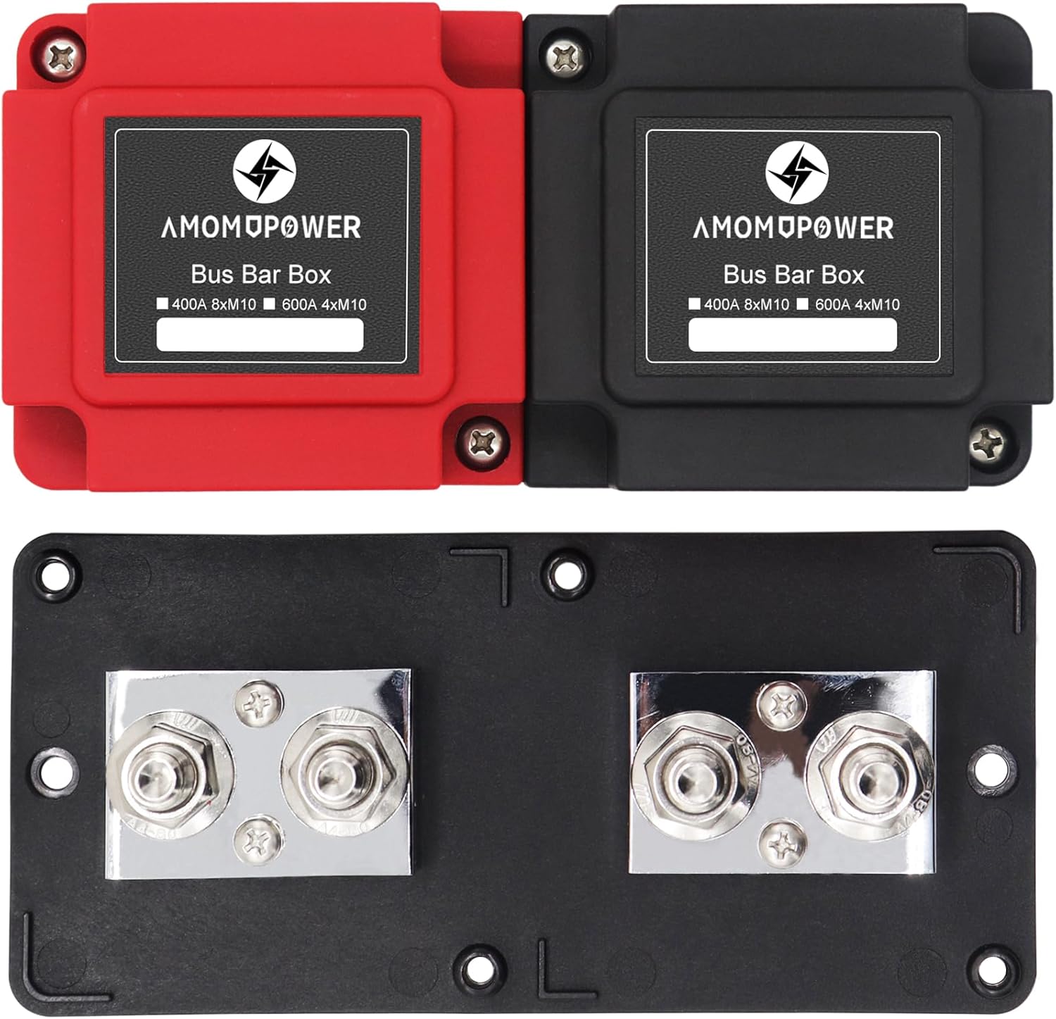 600A 48V Bus Bar Box 4 Stud (3/8 inch) M10 High Current Tin Plated Copper Distribution Block Positive Negative Independent Modules Electrical Battery Ground Buss Bar with Cover for RV Marine