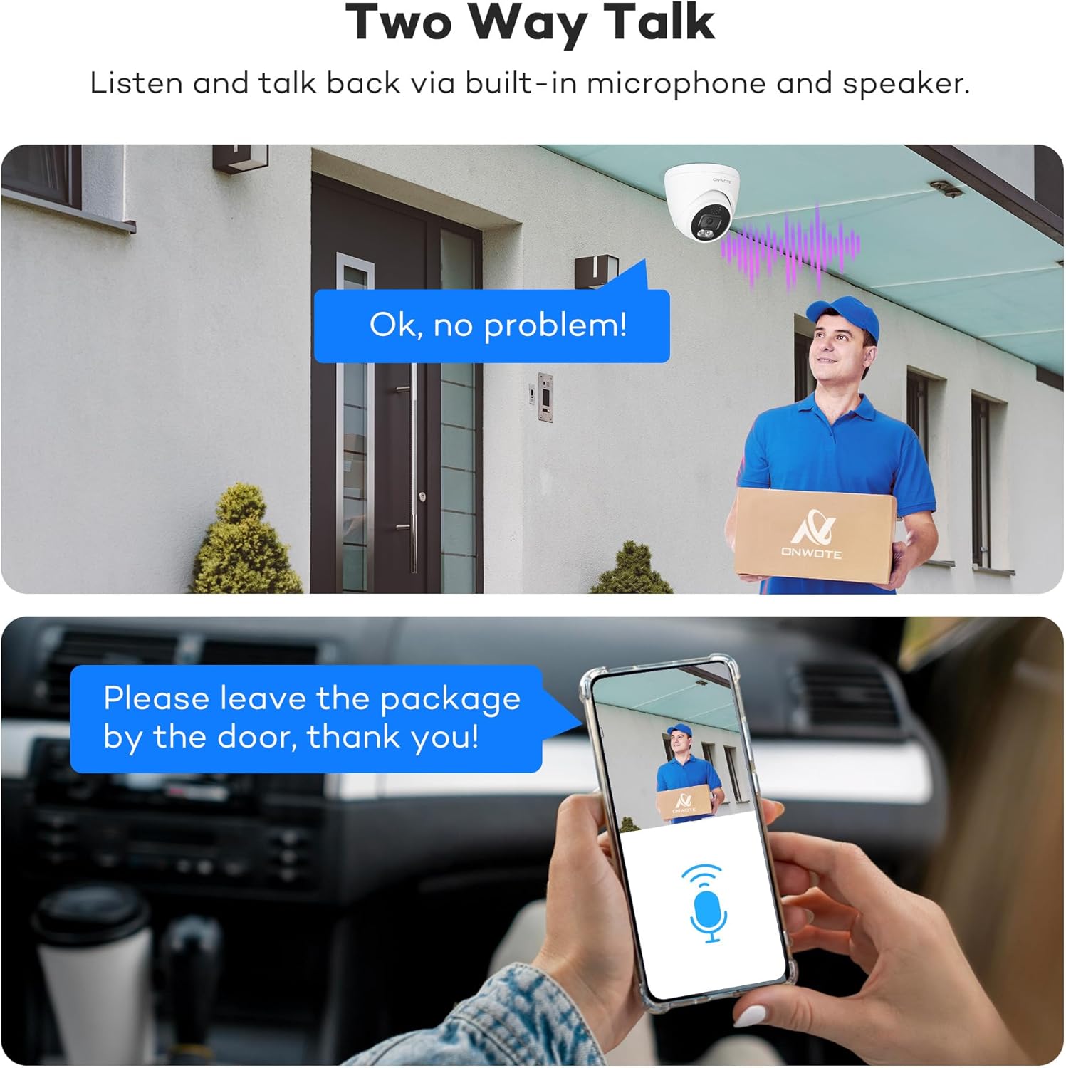 ONWOTE 4K NVR PoE Security Camera System 2 Way Audio, 8 Channel NVR 2TB, 4X 8MP Wired Outdoor IP Cameras, 125° FoV, AI Human Vehicle Detection Trigger Color Night Vision, CCTV Kit for Home Businesses