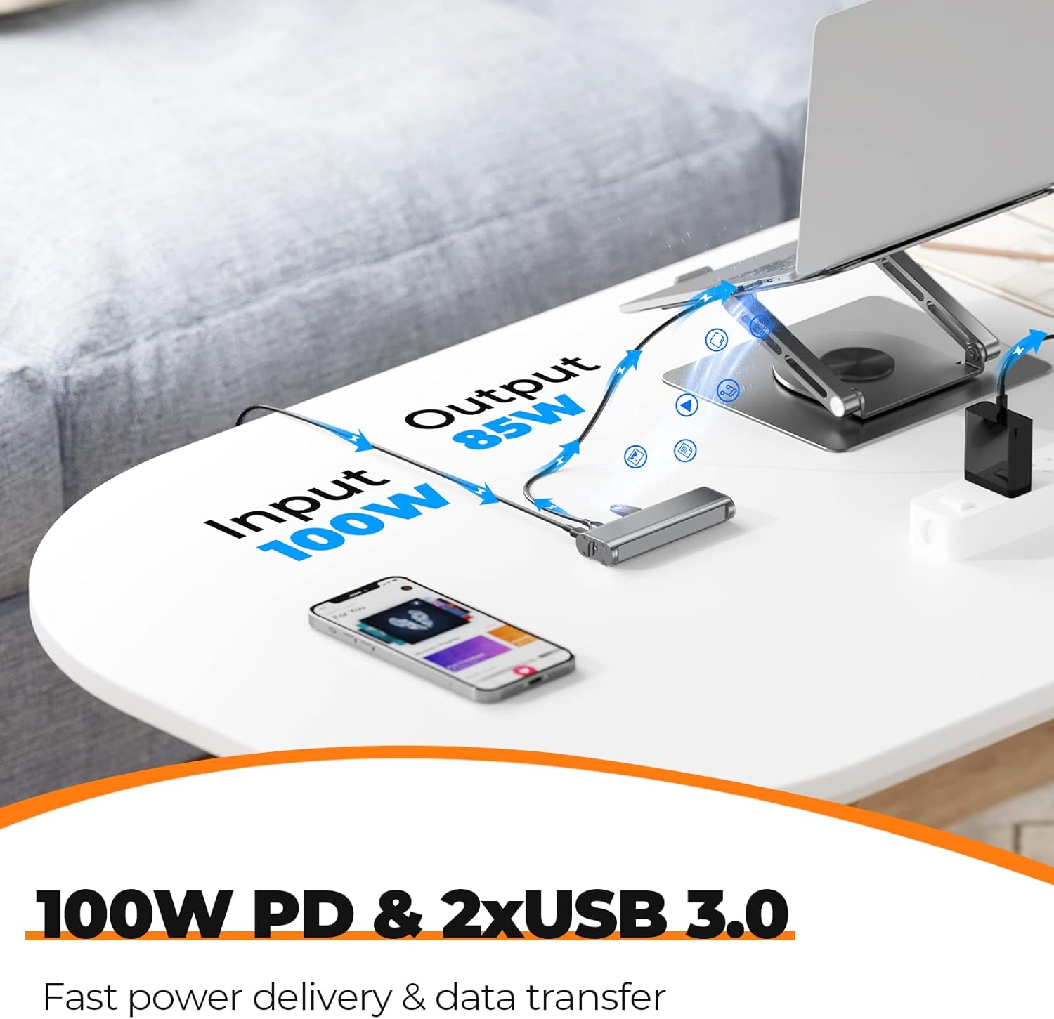 - 100W PD Charging & Data Transfer: This USB C docking station stand features 2 USB 3.0 ports that support transferring files at up to 5Gbps, allowing you to access the files in seconds. This TobenONE Macbook docking station provides one Type-C pass-through PD charge port which supports up to 100W power input and offers 87W power charging and can also transmit data when not charging.