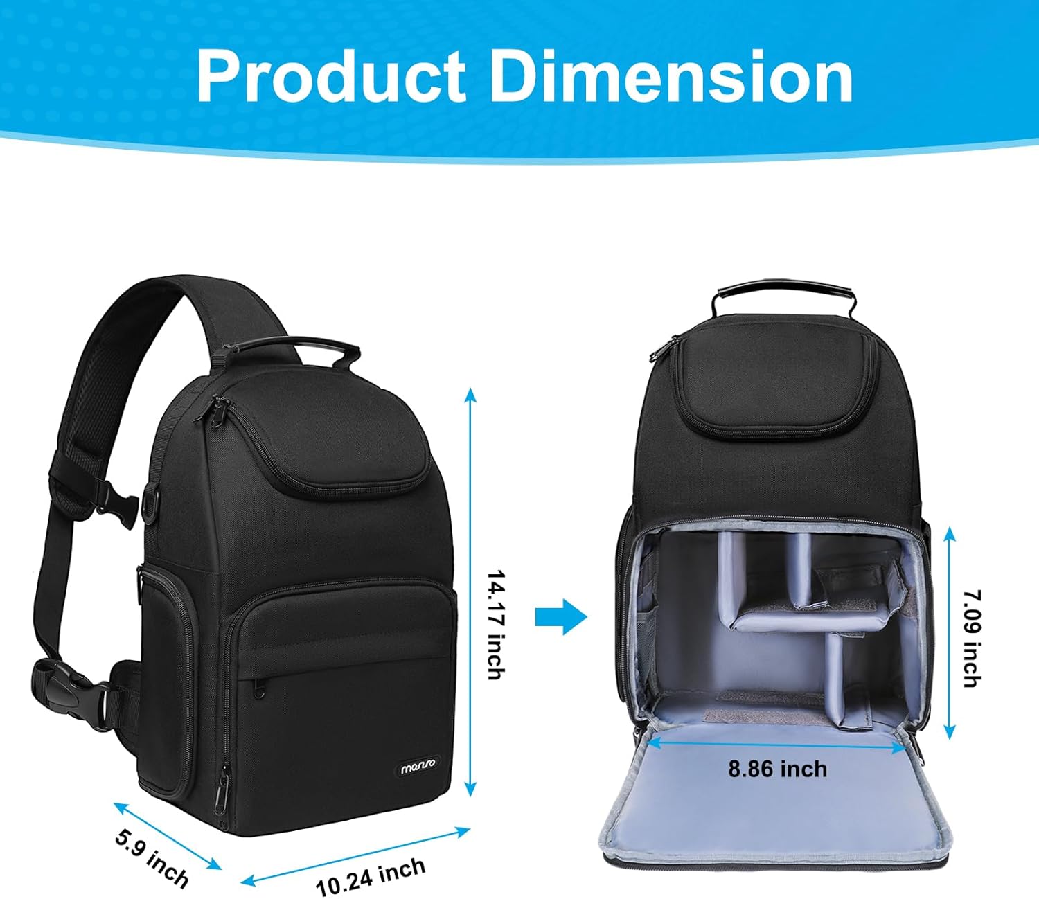 - The sling design makes it quick to turn from your back to the front for easy quick access to the camera. This camera sling backpack is professionally designed for DSLR / SLR / Mirrorless cameras of different brands. Compatible with Nikon D5600, D5300, D3500, D3400, D3300, D3200; Compatible with Canon EOS Rebel T6, T6i, SL2 and other standard-size DSLRs.
