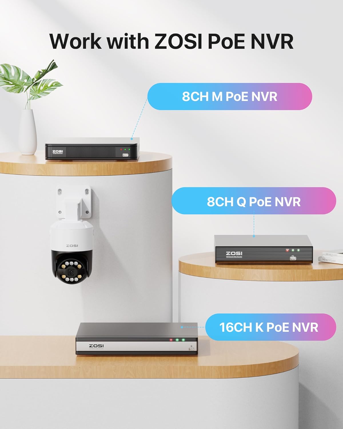 - (1). [ Pre-Purchase Info & Easy Setup & Flexible Storage Options ] __ Note: This PoE camera needs to be used with PoE switch or ZOSI PoE NVR. Power over Ethernet (PoE) simplifies installation by eliminating separate power cables. You have options to store your recordings: locally on a Micro SD Card (up to 128GB, sold separately) or on the ZOSI POE NVR. For additional security, consider unlimited cloud storage for a nominal fee in case of camera damage.