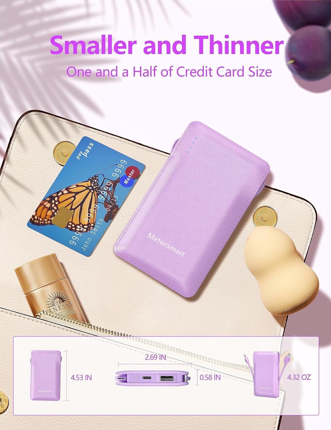 - Certified Safe: Metecsmart external battery built in UL certified battery cell ensures your safety.Keep away from worrying overcharge/overheating/overload issues. Most important is that the ultra-high density Metecsmart battery safer than the normal Li-polymer cell, which aslo makes it's so ultra-slim that easy to carry