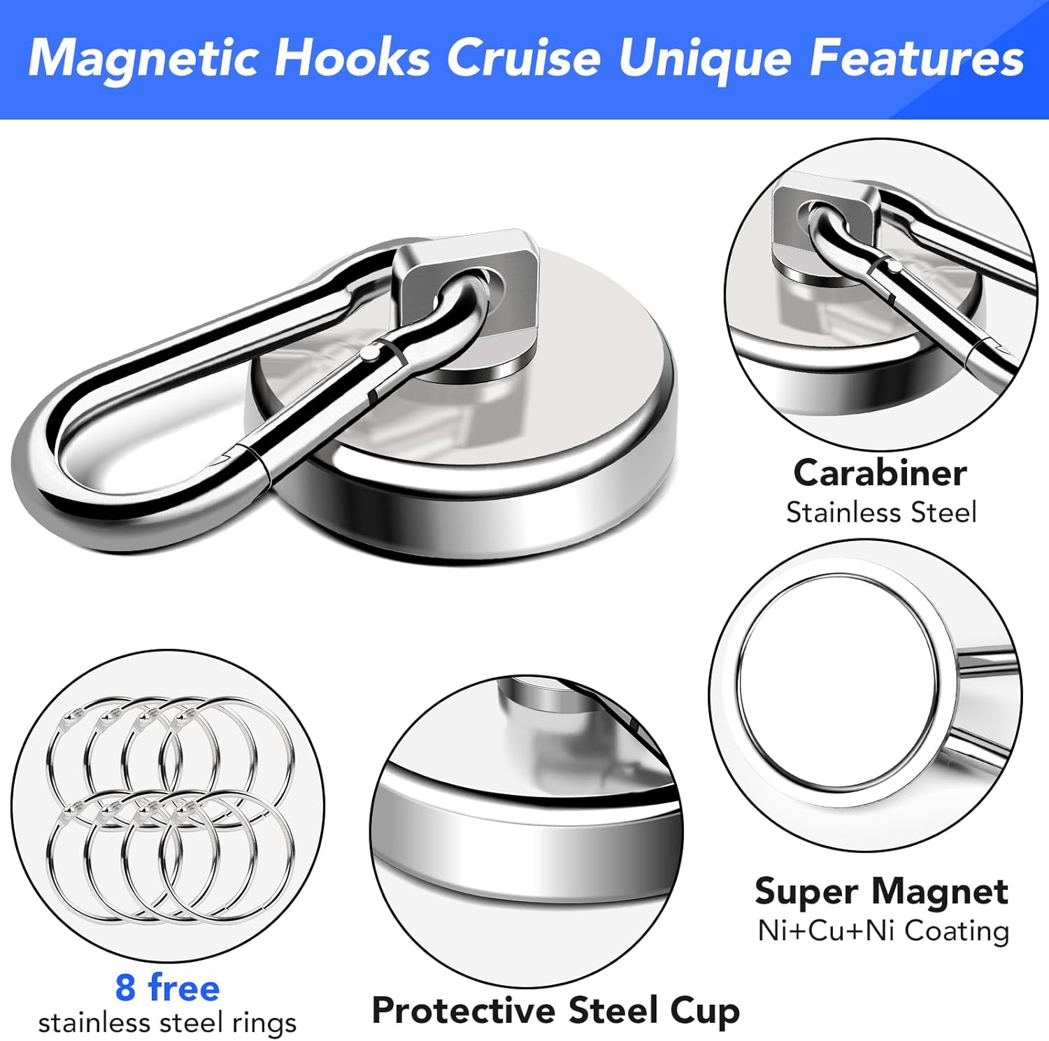 LOVIMAG Magnetic Hooks Heavy Duty, 110LBS Strong Magnetic Hooks Neodymium Magnets with Carabiner Hook, Magnet Hooks with Swivel for Grill, Hangning, Cruise, Kitchen, Garage, Refrigerator (8 Pack)