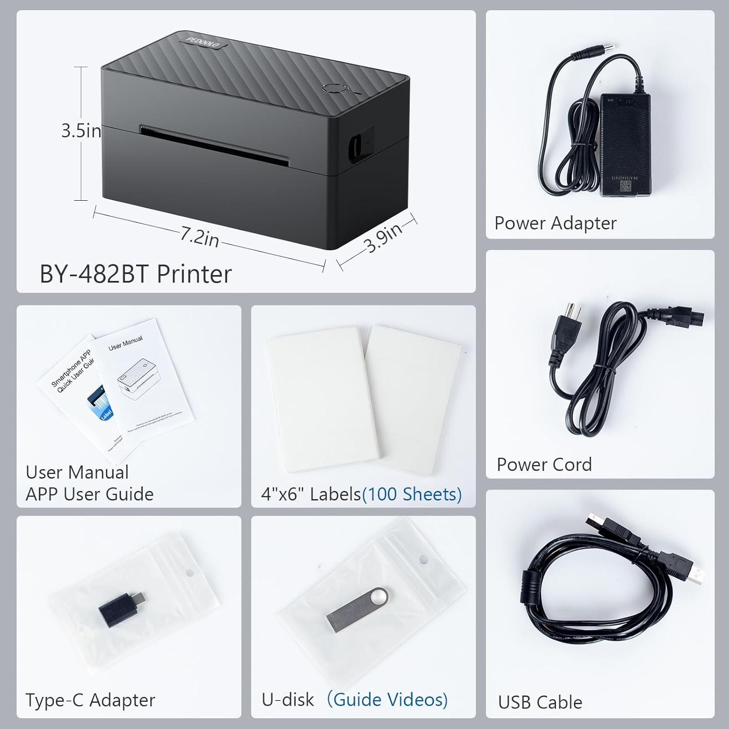 - 【Versatile Compatibility for Platforms & Labels】The shipping label printer, a great assistant for online small business, is compatible with almost all shipping and e-commerce platforms, including Amazon, eBay, UPS, FedEx, Shopify, etc. (Note: Save as PDF from platforms) Besides, the label printer supports any brand thermal labels with 1.57" to 4.1" width, allowing you to customize and print product labels, barcode labels, thanks stickers, etc. (Note: Customize labels via smartphone APP)
