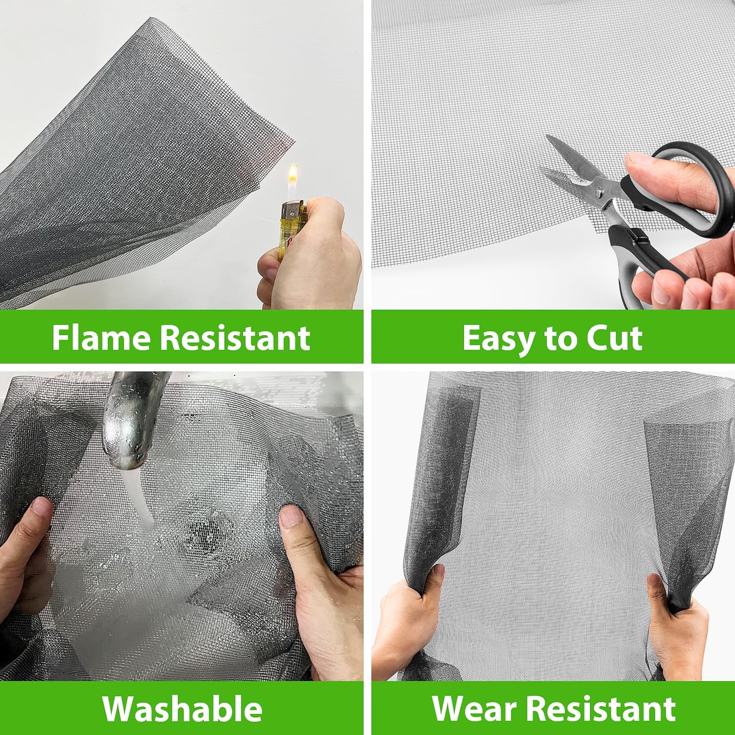 - Durable: The replacement window screens is made of upgraded fiberglass, with 18 x 16 weeve and fine mesh design, flame retardant, washable and non-deformable, the screen replacement kit can last up to 5 years