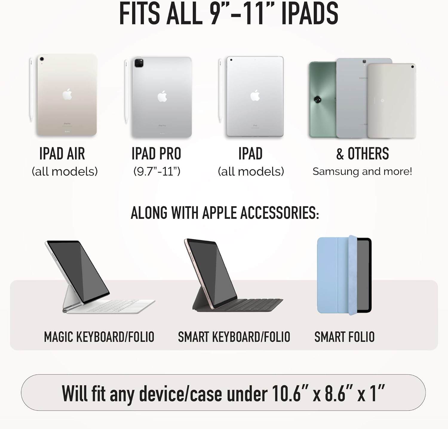 - COMPATIBLE WITH ALL 9-11INCH IPADS: Including iPad Pro 11 Inch, iPad Air 6th Generation, 5th Generation, 4th Generation, 3rd iPad 10th Generation, 9, 8, 7, 6, 5, Samsung Galaxy Tab S8/A8/A7/S3 + more