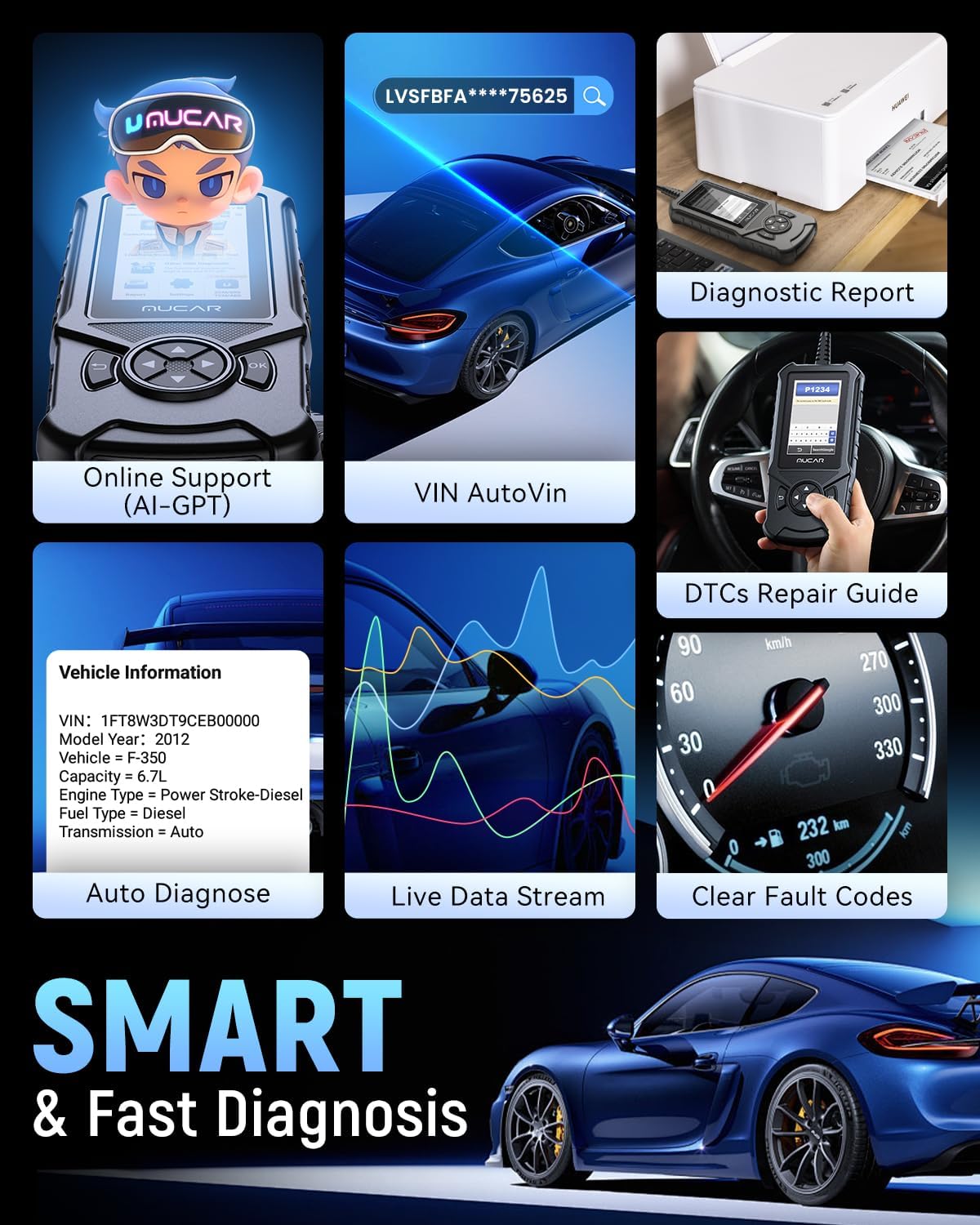 - 【Lifetime Fre.e Upgrade】We have been committed to providing efficient vehicle maintenance solutions, transforms complex vehicle data into actionable insights, this make it easy for both DIYers and auto technicians to get started. When you receive the product, please upgrade to the latest version for a better experience. Tips: We don't provide third-party FCA account. If there's any issues with the product, please feel free to contact seller or email service@ mucarco. com. :D