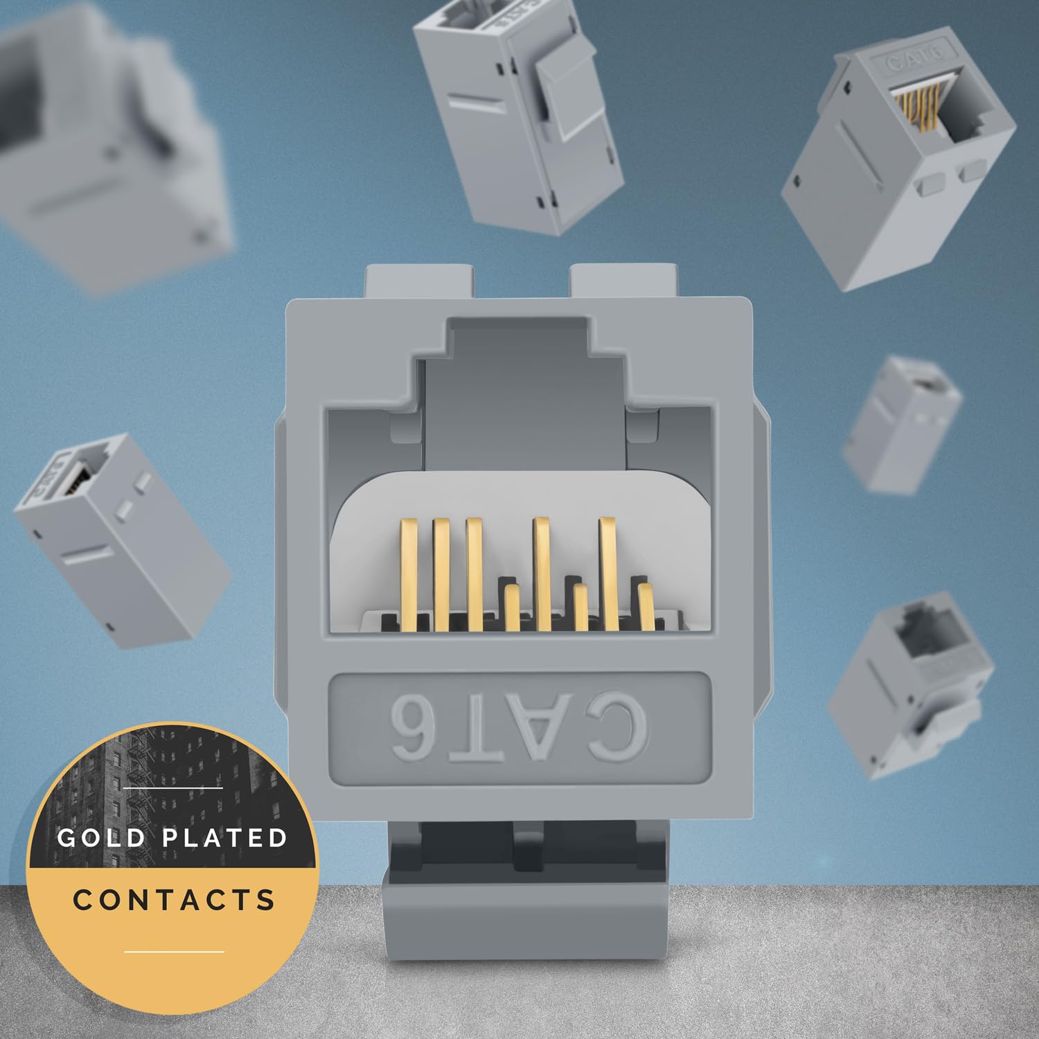 Everest Cat6 RJ45 Keystone Coupler (6-Pack) in Gray - RJ45 Coupler - Cat 6 Couplers - Female to Female Cat6 Keystone Jacks - Ethernet Couplers - Ethernet Cable Extender