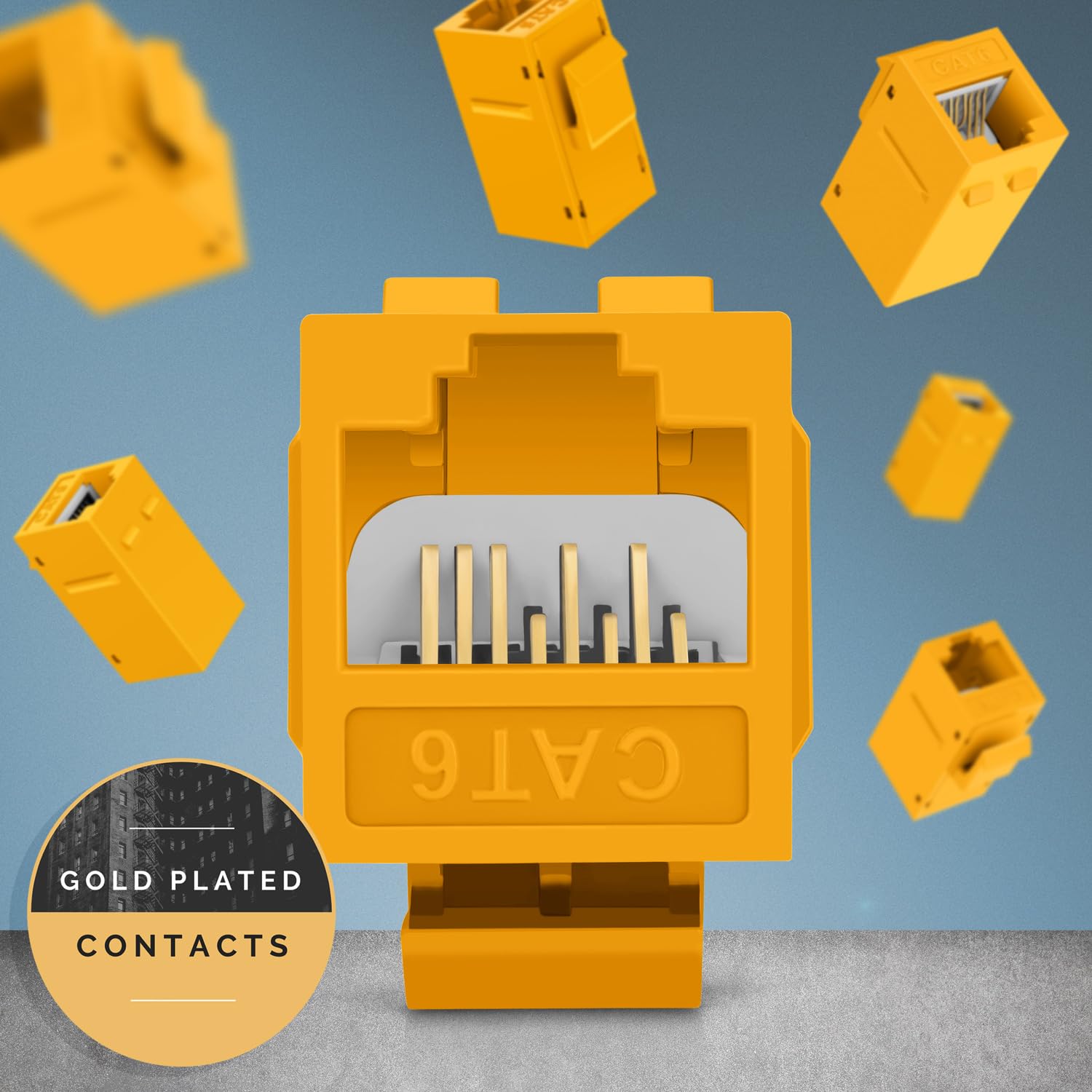 Everest 24-Pack Yellow Cat6 RJ45 Keystone Coupler - Female to Female Cat6 Keystone Jacks - Ethernet Couplers - Ethernet Cable Extender