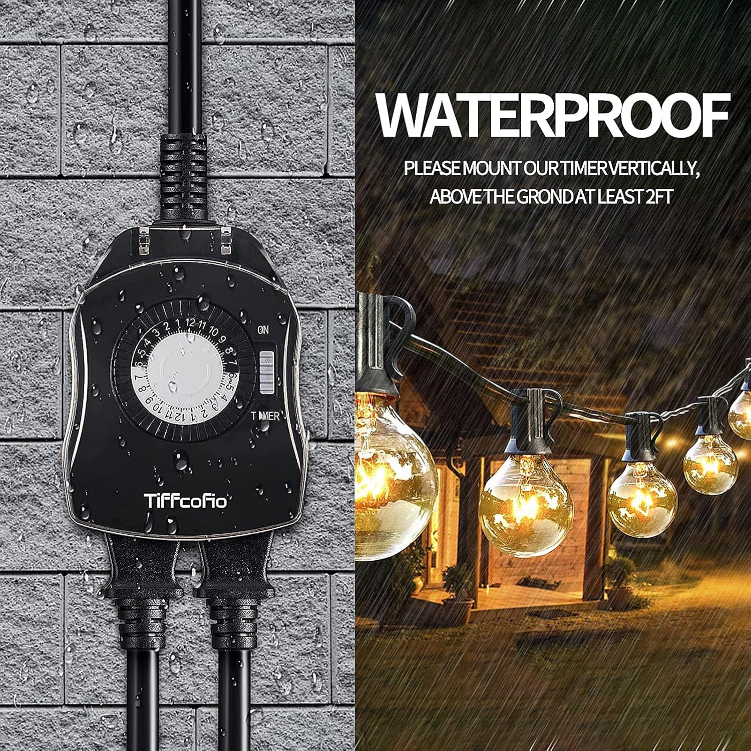 - 【Great Weatherproof Performance】: Adopts new durable structure and made with waterproof materials, the timer outlet can resist extreme weather and severe cold; to ensure waterproof performance, please mount it vertically at least 2ft above the ground.