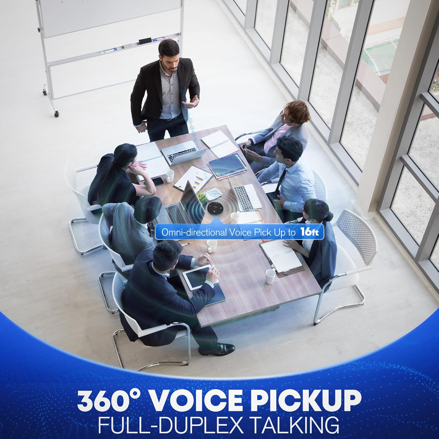 - 【360° Omnidirectional Voice Pickup】The M4 Pro Conference speakerphone is equipped with 4 built-in omnidirectional microphones that can pick up sound within a range of 16 feet. This conference speakerphone is specialized for the office workers to solve the pain points of inaudible remote calls noisy environments, so that users can always enjoy a clear, stable and smooth remote calling experience everywhere. Applicable for teleconference, online learning, media interview, business negotiation, etc.