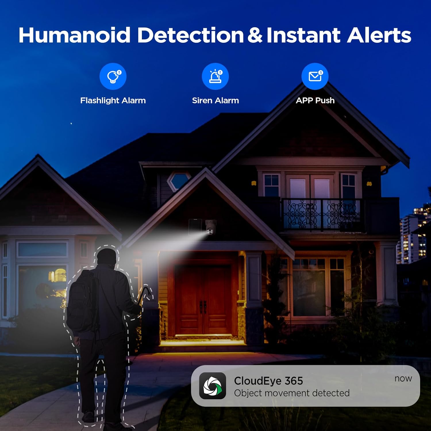 - PIR Sensor and Audible & Visual Alarm: With PIR sensing technology, the home security camera record when only detect motion and sends real-time alerts to your phone. Sound alarm and light alarm works in the dark to help you scare off unwelcome people.